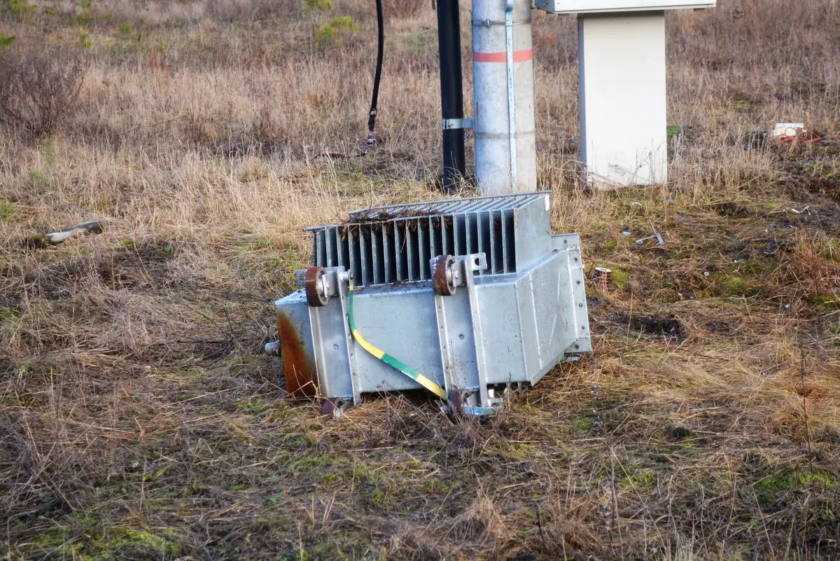 Mundurowi wrócili do miejsca, z którego rozpoczęli pościg i przy słupie energetycznym gdzie wcześniej zaparkowana stał pojazd, zauważyli zrzucony ze słupa transformator z obciętymi kablami. Mężczyzn zatrzymano.