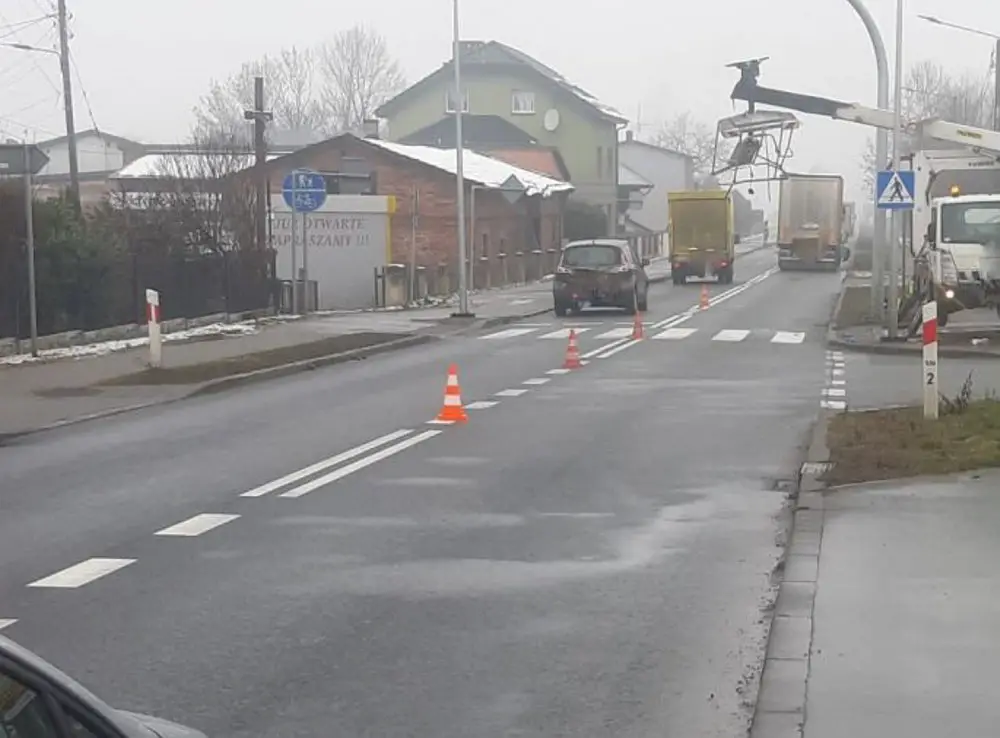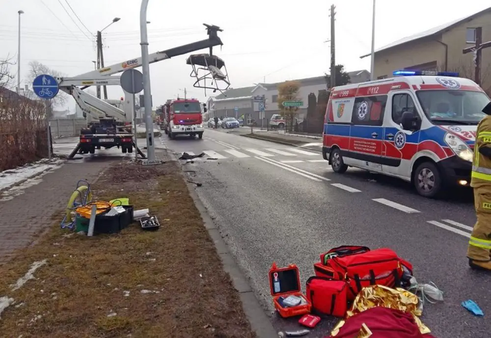 Wykonywać pracę związane z montażem oświetlenia w rejonie skrzyżowania. Po uderzeniu mężczyźni wypadli z kosza na drogę.