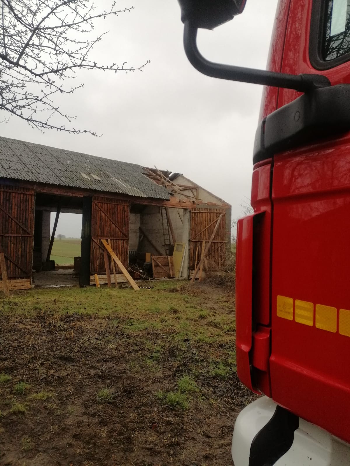Do najpoważniejszego zdarzenia doszło w miejscowości Rajsko w podkaliskiej Gminie Opatówek, gdzie silny wiatr zerwał fragment dachu na budynku kurnika. W hali znajdowało się około 28 tyś. sztuk tygodniowych kurcząt. Strażacy usunęli przy pomocy bosaków podręcznych oraz podręcznego sprzętu burzącego naderwaną część dachu.