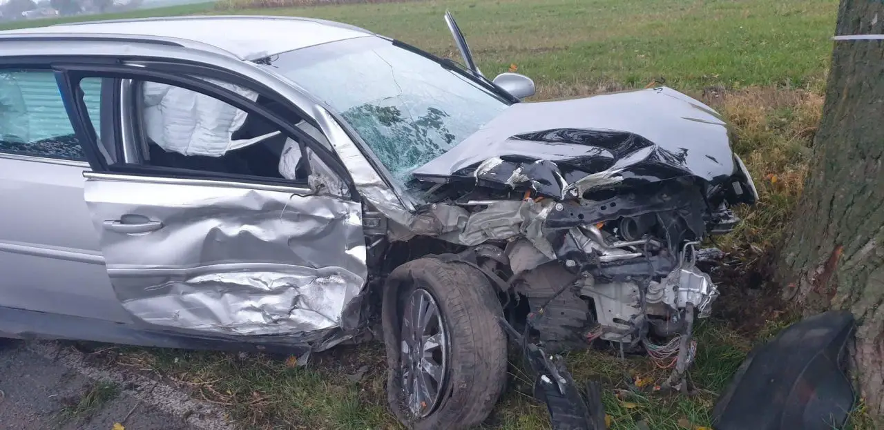 Kierująca z nieznanych przyczyn zjechała z pasa ruchu i uderzyła w drzewo. Na miejsce zdarzenia zadysponowane zostały dwa zastępy OSP Osiek Nad Notecią, jeden zastęp Ochotniczej Straży Pożarnej w Wyrzysku oraz jeden zastęp z Jednostka Ratowniczo-Gaśnicza nr 2 w Pile. Po dojeździe na miejsce zdarzenia strażacy zabezpieczyli miejsce wypadku oraz udzielili kobiecie Pierwszej Pomocy do czasu przyjazdu ZRM. Decyzją lekarza poszkodowana kobieta została przetransportowana do szpitala. W początkowej fazie działań droga była zablokowana, działania zakończono po około 3,5 godziny.