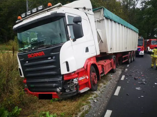 Po dojeździe na miejsce zdarzenia strażacy zastali samochód osobowy, który uderzył w pojazd ciężarowy. Kierujący opuścili pojazdy przed przybyciem SP i znajdowali się w pobliżu.