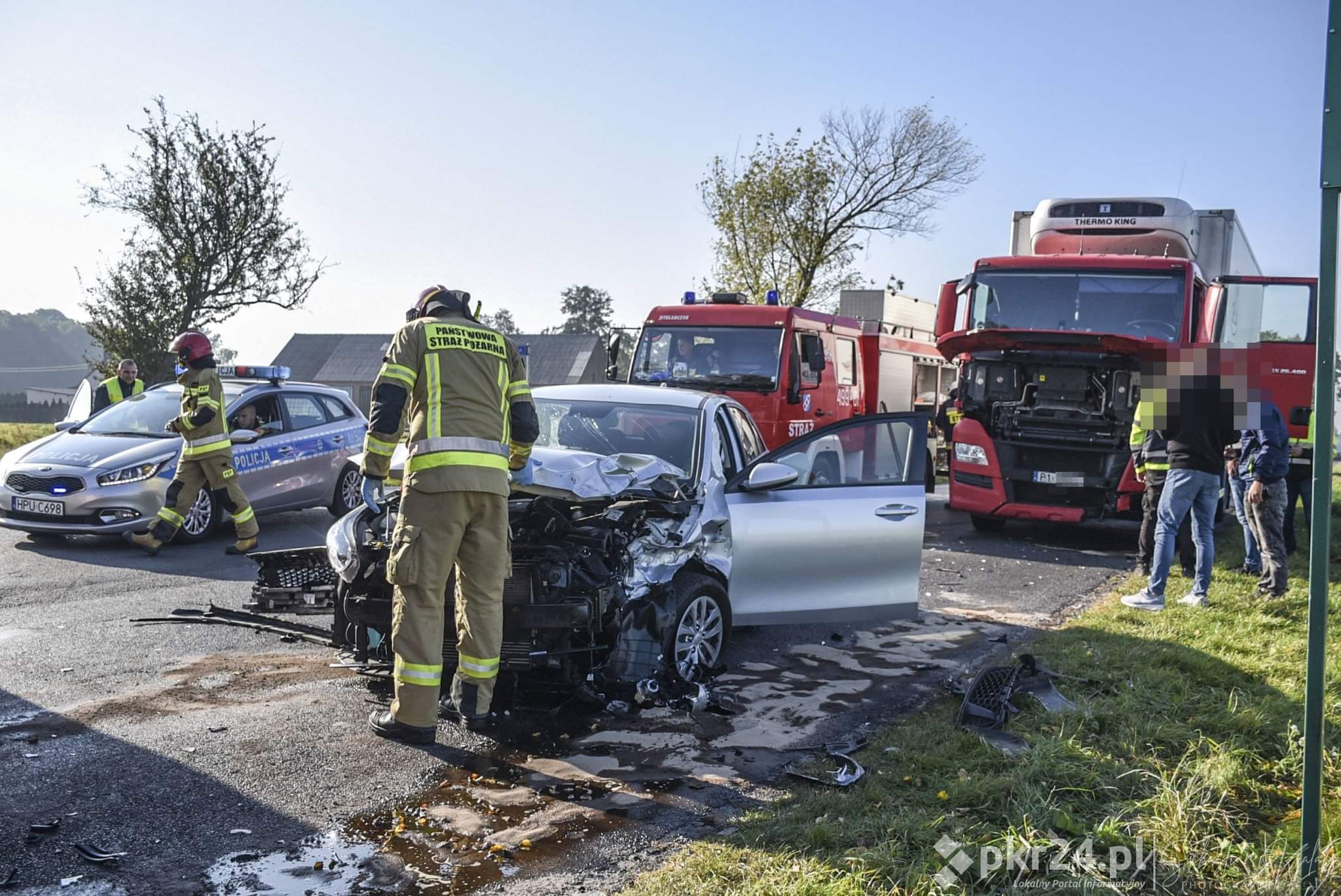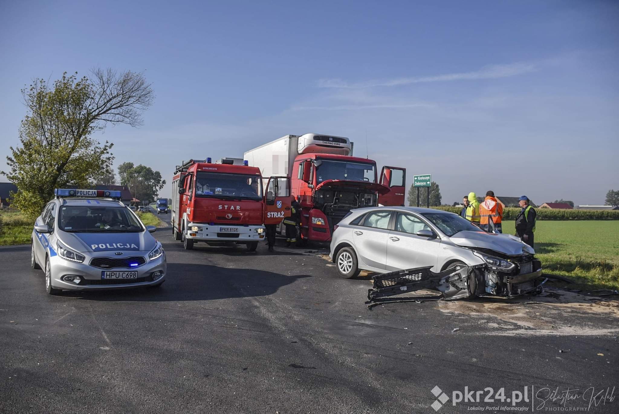 Wstępnie ustalono, że w miejscowości Wyki (skrzyżowanie z drogą na Koźminiec) 45-letnia mieszkanka Kalisza kierując samochodem osobowym marki KIA wyjeżdżając z drogi podporządkowanej nie udzieliła pierwszeństwa przejazdu doprowadzając do zderzenia z prawidłowo jadącym drogą Rozdrażew – Dobrzyca pojazdem ciężarowym marki Man, którym kierował 24-letni mężczyzna – informuje st.asp. Piotr Szczepaniak Oficer Prasowy Komendy Powiatowej Policji w Krotoszynie