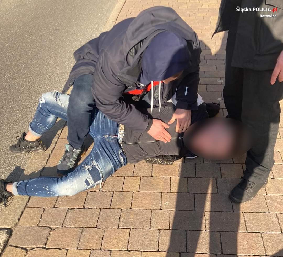 Katowiccy policjanci wspólnie z funkcjonariuszami NGW OPP Katowice zatrzymali mężczyznę, który usiłował oszukać metodą na policjanta matkę i syna. Podając się za stróża prawa, chciał wyłudzić od nich 850 tys. zł. Tylko dzięki szybkiej reakcji pracowników banku i katowickich policjantów nie doszło do oszustwa, a sprawca został zatrzymany. Mężczyźnie grozi kara do 10 lat więzienia.