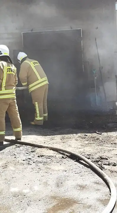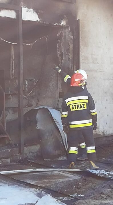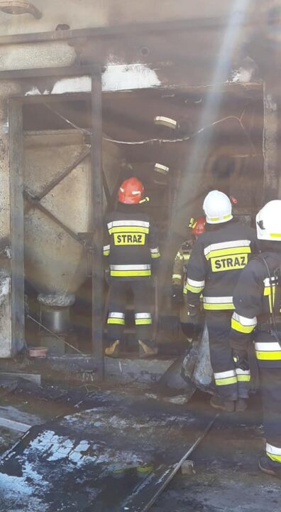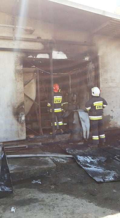 Po dojeździe na miejsce zdarzenia przez strażaków potwierdzono iż pali się izolacja drzwi blaszanych do budynku inwentarskiego oraz zawartość pomieszczenia bezpośrednio za nimi, panowało również silne zadymienie, prąd w tej części budynku został odłączony przez pracowników. Pracownicy zakładu próbowali gasić ogień za pomocą węży ogrodowych. Brak osób poszkodowanych.