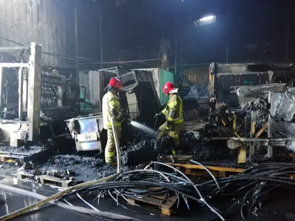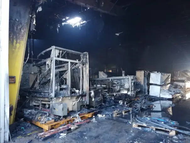 Pierwsze przybyłe na miejsce zdarzenia zastępy zastały ciemny dym wydobywający się z zamkniętej hali. Kierujący działaniem ratowniczym podjął decyzję o wycięciu otworów, przez które podano środek gaśniczy a następnie po otworzeniu bram wprowadzono do środka dwie roty gaśnicze, które zlokalizowały a następnie ugasiły pożar. W działaniach wykorzystano drony, przy pomocy których monitorowano dach budynku.