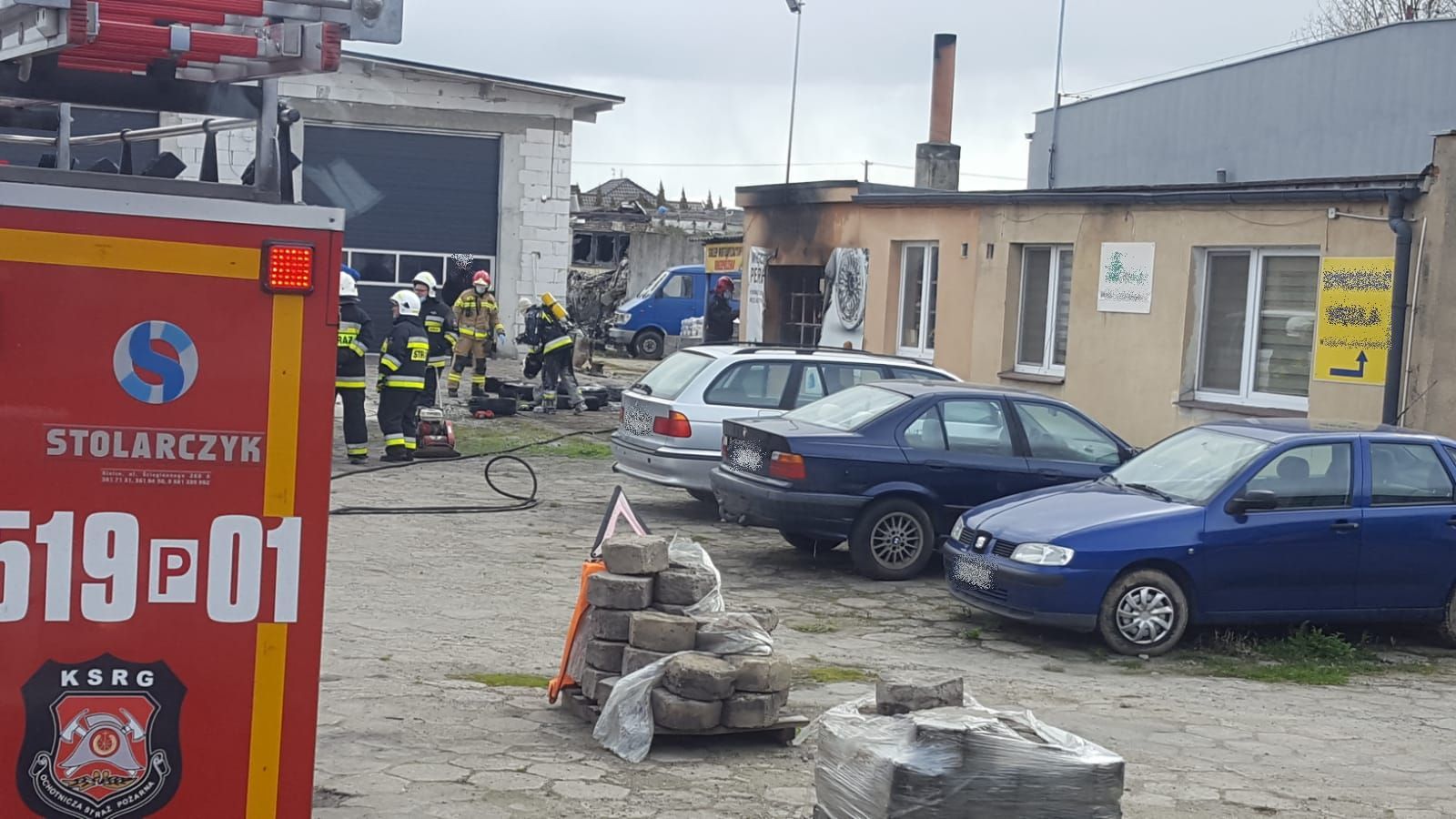 Na miejsce zdarzenia zadysponowano po dwa zastępy straży z JRG Nowy Tomyśl oraz OSP Kuślin w tym drabinę mechaniczną. Po przybyciu pierwszych zastępów okazało się, że pożarem objęte były opony składowane w kotłowni przez co ucierpiało całe pomieszczenie. Właściciel obiektu próbował ugasić pożar przed przybyciem służb za pomocą gaśnicy proszkowej, niestety bezskutecznie. Ze względu na lokalizację pożaru drabina mechaniczna została zawrócona do bazy w trakcie dojazdu.