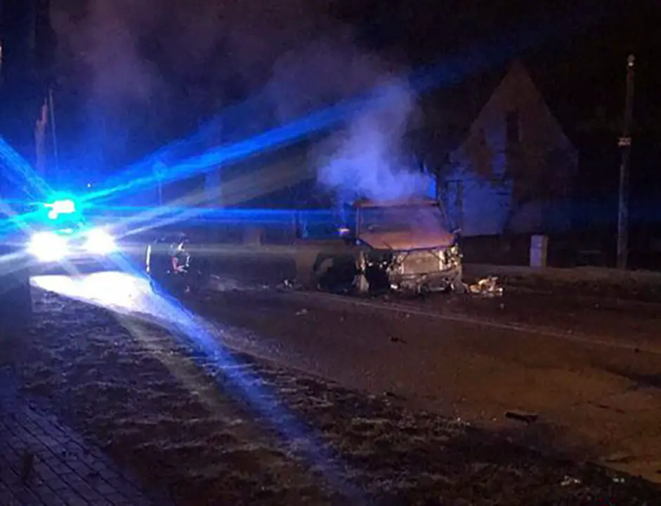Rozpędzony chrysler jechał ul. Westerplatte w kierunku ul. Wojska Polskiego. Z ogromną prędkością przejechał przez rondo PCK. Na prosty odcinku ul. Wojska Polskiego chrysler wypadł z drogi na pobocze i tam z dużą prędkością uderzył w drzewo. Siła uderzenia była potężna. Elementy samochodu rozsypały się na drogę. Z silnika pojazdu dymiło się.