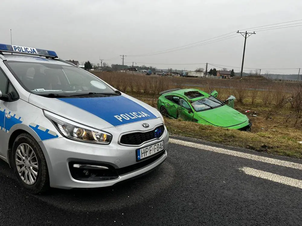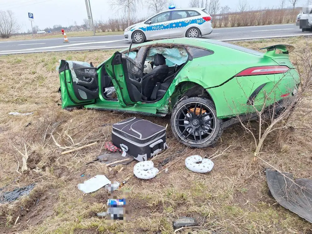 Kierowca luksusowego sportowego mercedesa stracił panowanie nad pojazdem, zjechał z jezdni i dachował. Kierowca podróżował z dwoma osobami, na szczęście nikt podczas tego zdarzenia nie ucierpiał.
