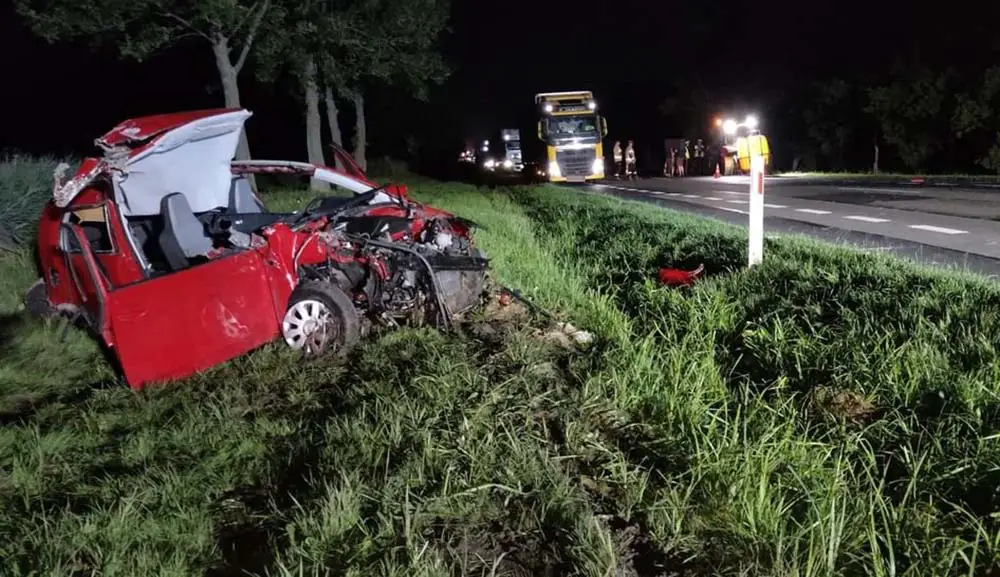 Skoda została dosłownie rozerwana. Ranny został 27-letni pasażer. Z pojazdu wycinali go strażacy, a załoga karetki pogotowia przewiozła go do szpitala. Kierującemu skodą oraz 30-latkowi oraz kierowcy ciągnik nic się nie stało.