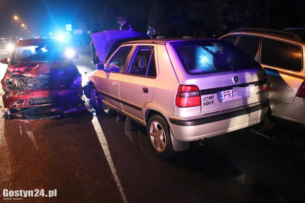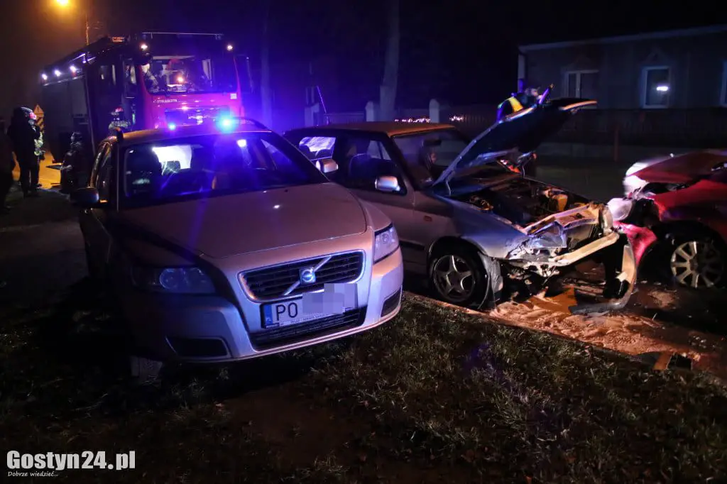 Około godz. 18:45 na ul. Wrocławskiej w Gostyniu zderzyły się trzy samochody osobowe – Volvo, Skoda Felicia i Volkswagen Golf. Wszystko wskazuje na to, że do zdarzenia przyczynił się kierowca Volkswagena – około 60-letni mieszkaniec powiatu gostyńskiego, który jechał z centrum Gostynia w kierunku Krobi.