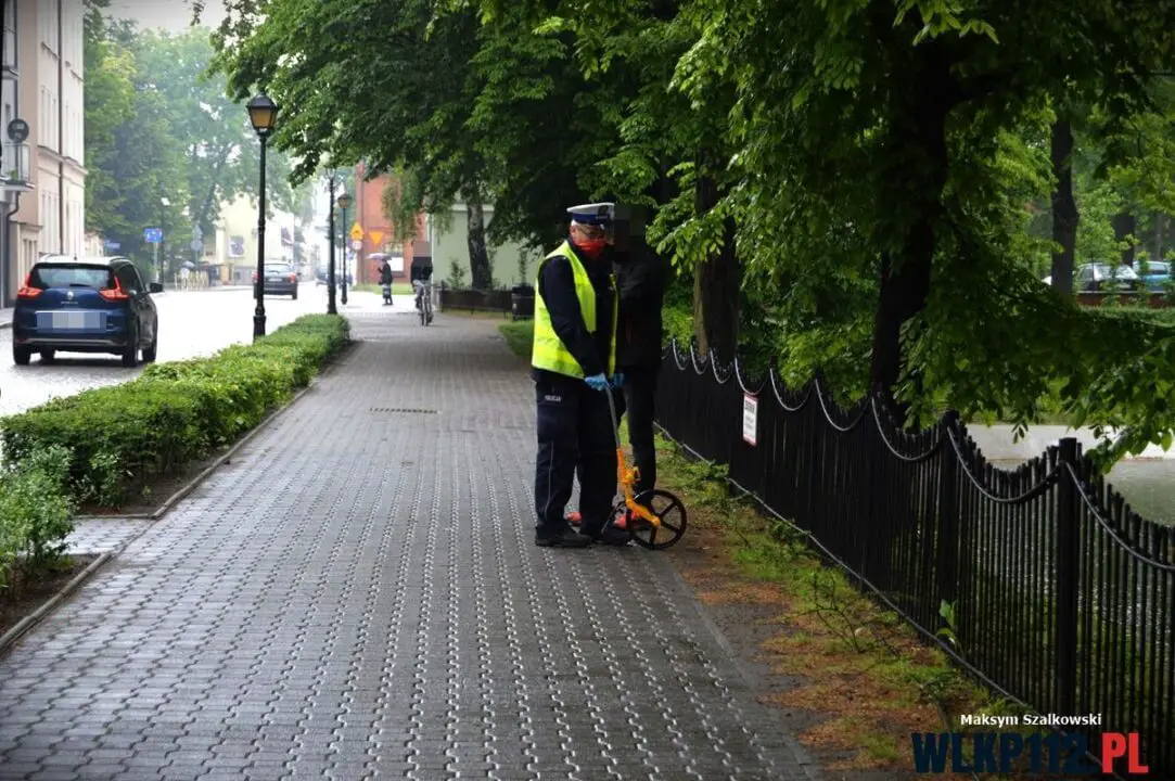 Kierujący jednośladem 48-letni mężczyzna jadący chodnikiem wpadł prosto na maskę samochodu osobowego marki volkswagen, który wyjeżdżał z bramy jednej z kamienic. Jak się okazało 48-latek był pod wpływem alkoholu. Baranie alkomatem wykazało u mężczyzny prawie 1,5 promila. Doznał on poważnego urazu nogi i przybyły na miejsce lekarz stwierdził, że konieczne będzie przetransportowanie poszkodowanego do leszczyńskiego szpitala.
