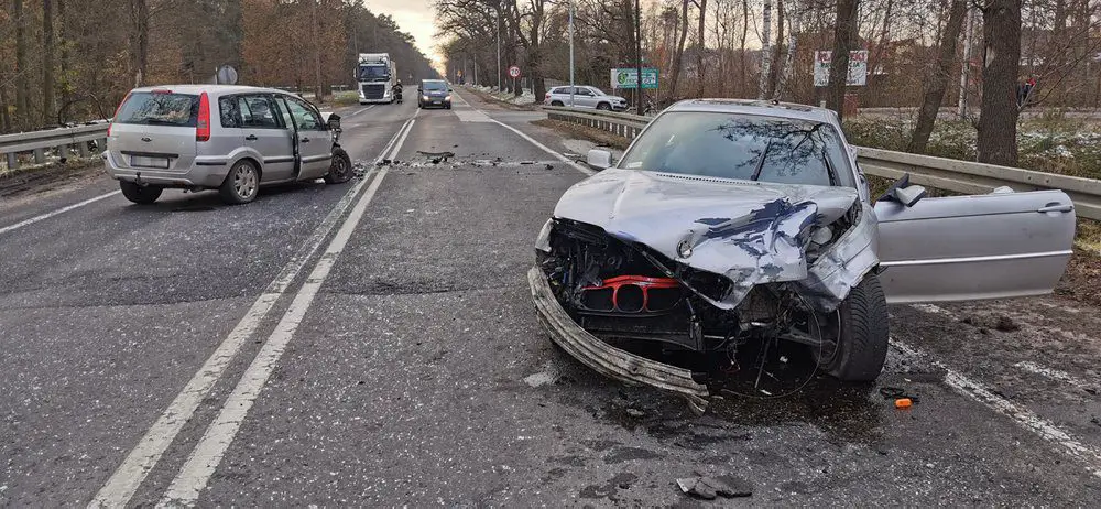 W celu uniknięcia potrącenia rowerzysty, 20-letni kierowca BMW zjechał na przeciwległy pas ruchu i tam zderzył się z fordem, którym kierowała 64-latka.