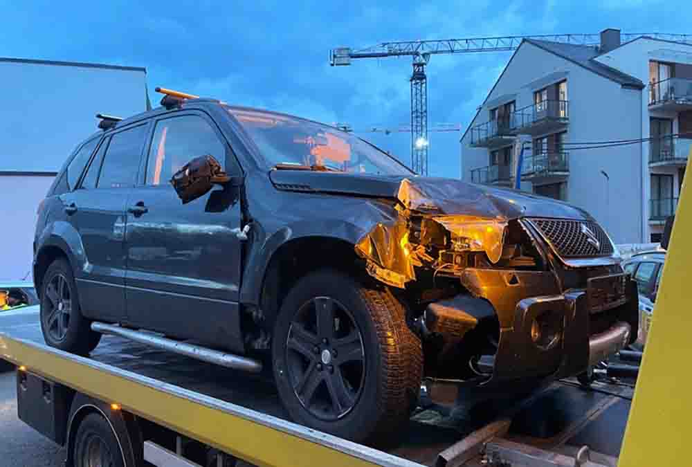 Gdy tylko policjanci zatrzymali się za suzuki, a jeden z nich wysiadł, aby podejść do kierowcy siedzącego w rozbitym suzuki, ten nagle ruszył, próbując uciec ścigającym go mundurowym. W pewnym momencie kierowca porzucił niesprawne auto i próbował uciekać pieszo. Nieudolna próba uniknięcia odpowiedzialności skończyła się po kilkunastu metrach.