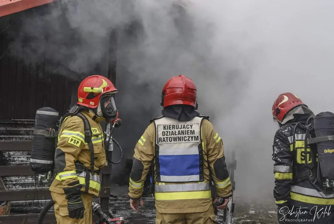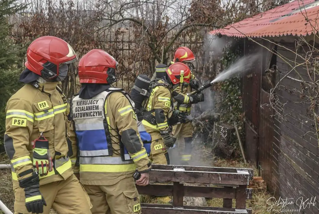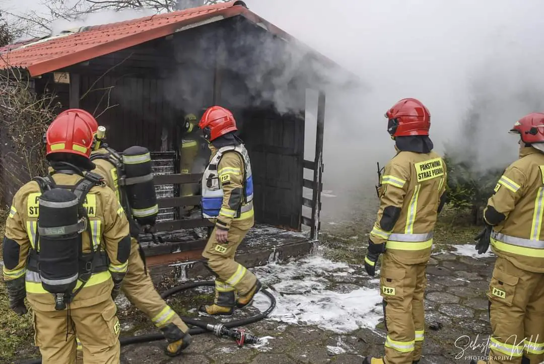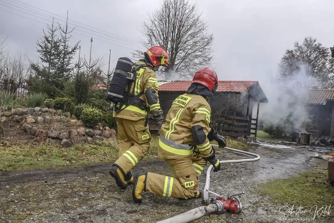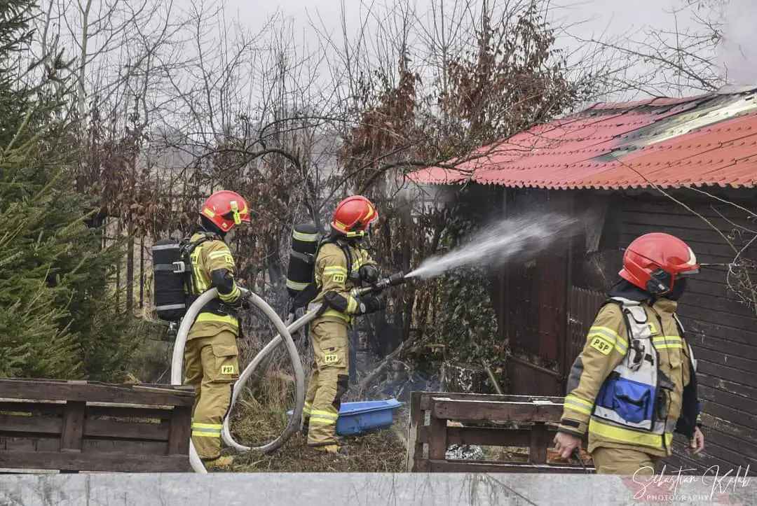 W miejscowości Krotoszyn na strzelnicy Braci Kurkowych doszło do pożaru budynku gospodarczego. Strażacy na miejscu. Pożar wybuch w niedzielę 24 stycznia o godzinie 13:09
