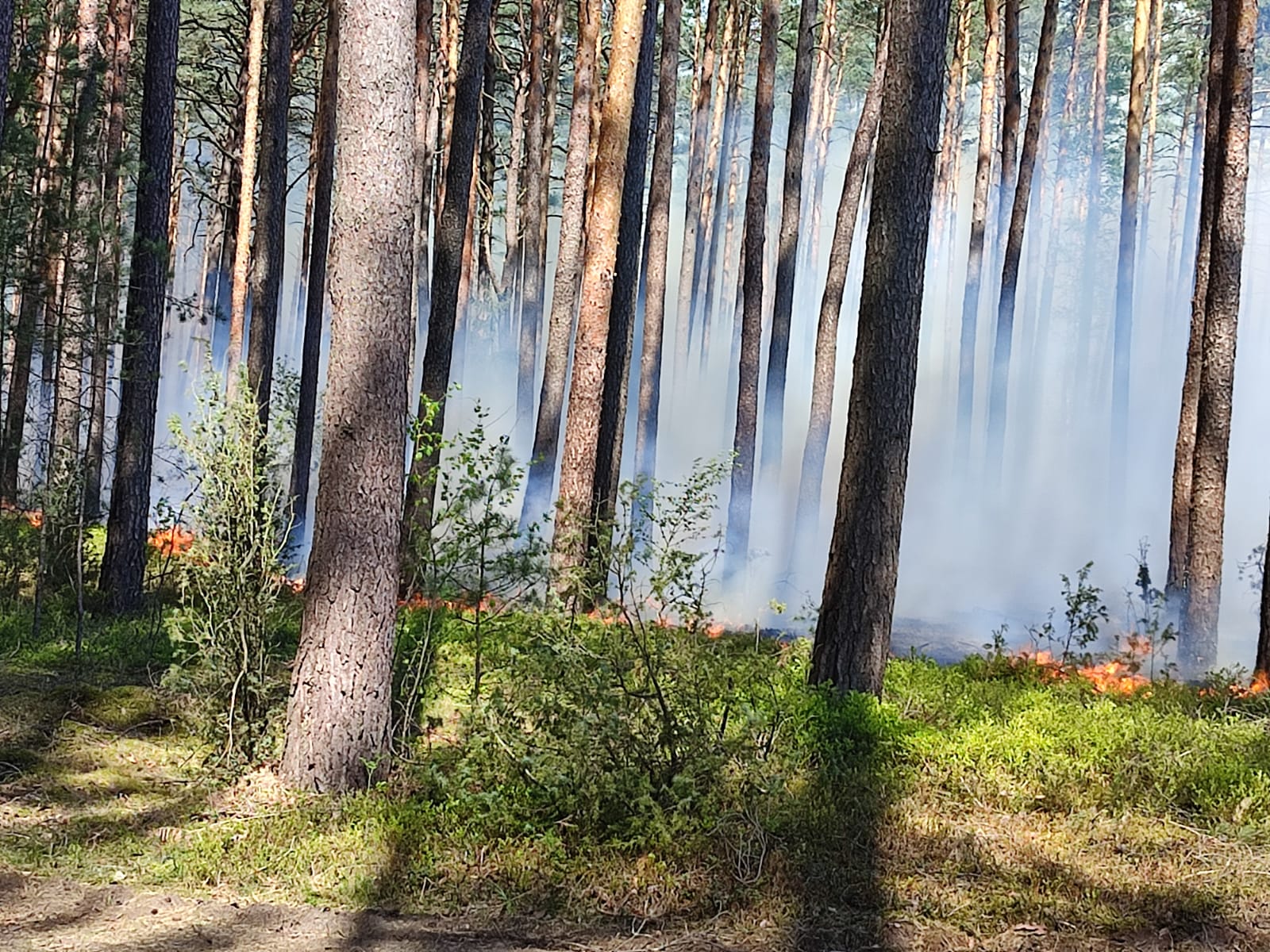 Pierwsze przybyłe na miejsce zastępy potwierdziły występowanie pożaru, który jak się okazało objął już znaczą powierzchnię. Spowodowało to zaangażowanie znacznych sił i środków zarówno jednostek ochrony przeciwpożarowej, jak i Lasów Państwowych.