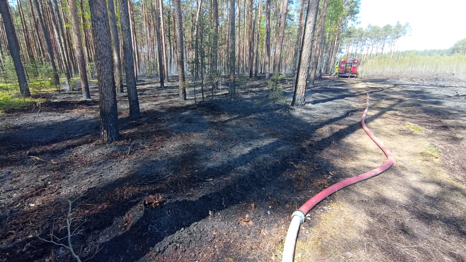 Na szczęście wspólny wysiłek strażaków i leśników pozwolił opanować pożar, który ostatecznie objął powierzchnię ok 2,4 ha.