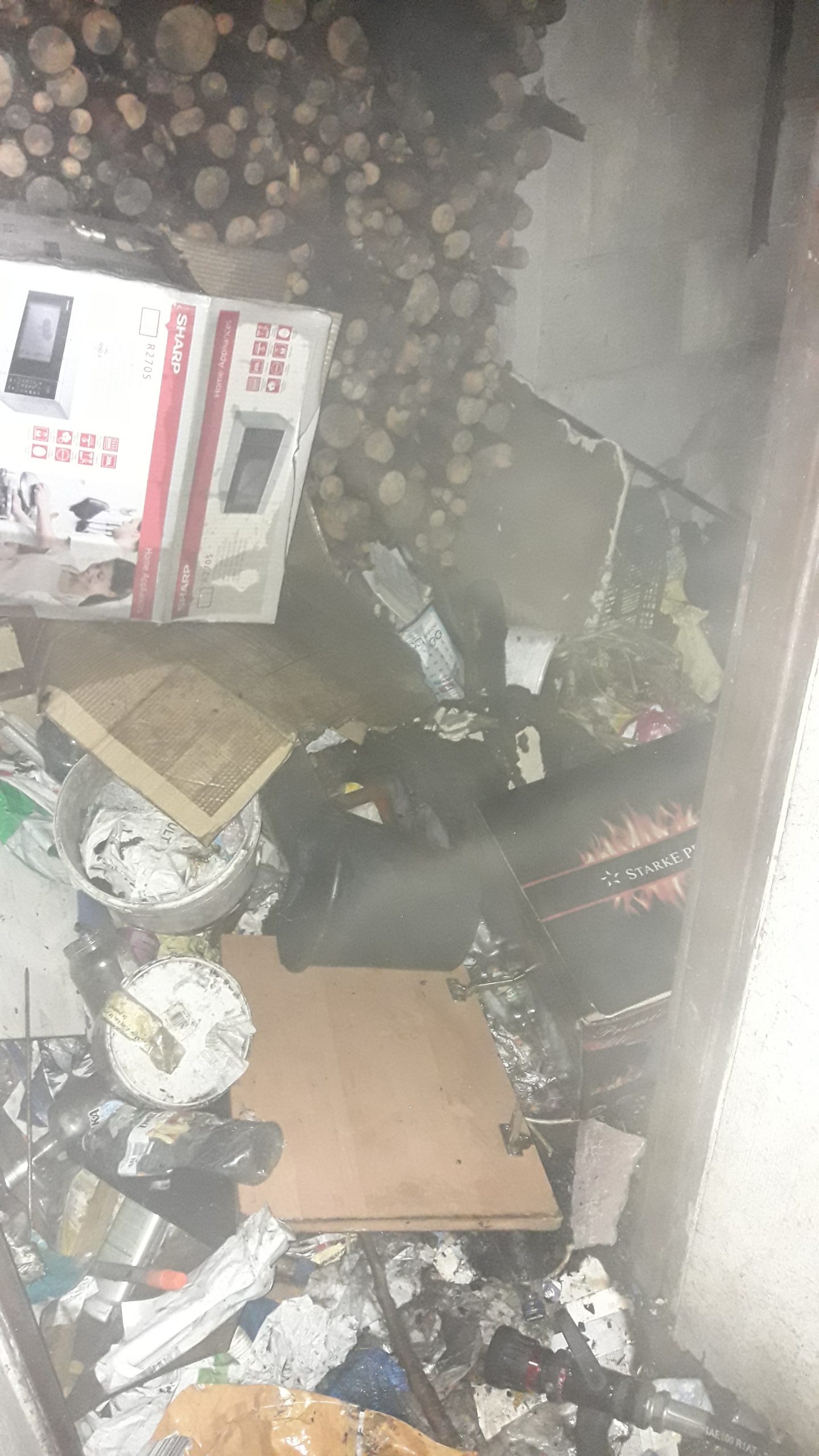 Po ugaszeniu ognia w kotłowni, przystąpiono do wynoszenia dużej ilości nadpalonego drewna składowanego w kotłowni, celem sprawdzenia czy w dalszej części pomieszczenia nie występują zarzewia ognia. Pomieszczenia kotłowni przewietrzono z wykorzystaniem turbowentylatora.