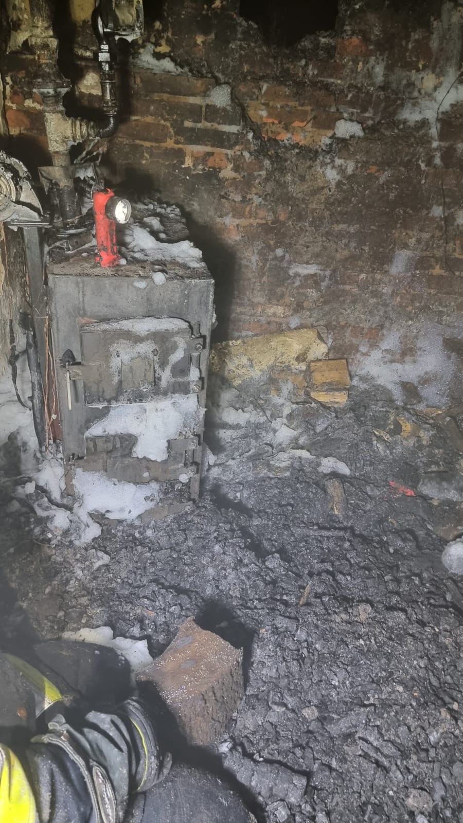 W momencie przyjazdu na miejsce zastano pożar pomieszczenia kotłowni, które przylegało do budynku mieszkalnego. Ogniem objęty też był dach kotłowni, istniało bezpośrednie zagrożenie do budynku mieszkalnego.