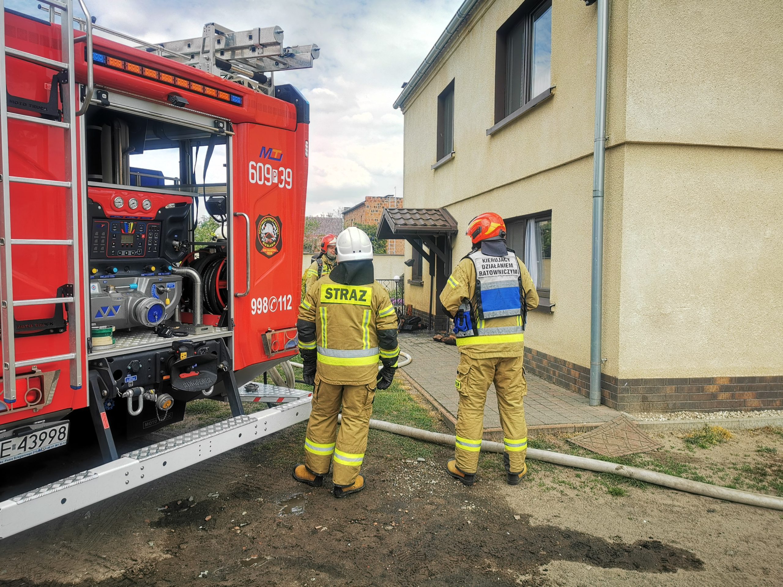 Po przybyciu zadysponowanych zastępów na miejsce zdarzenia w wyniku rozpoznania ustalono, że pali się opał w kotłowni budynku jednorodzinnego. Przed przybyciem zastępów straży pożarnej mieszkańcy opuścili samodzielnie budynek. Działania JOP polegały na zabezpieczeniu miejsca zdarzenia,podaniu jednego prądu gaśniczego w natarciu przez ratowników zabezpieczonych w OUO oraz wyposażonych w kamerę termowizyjną.
