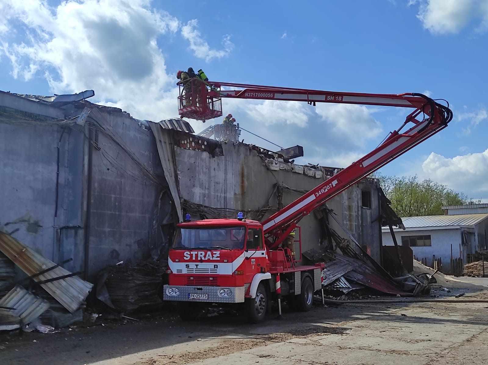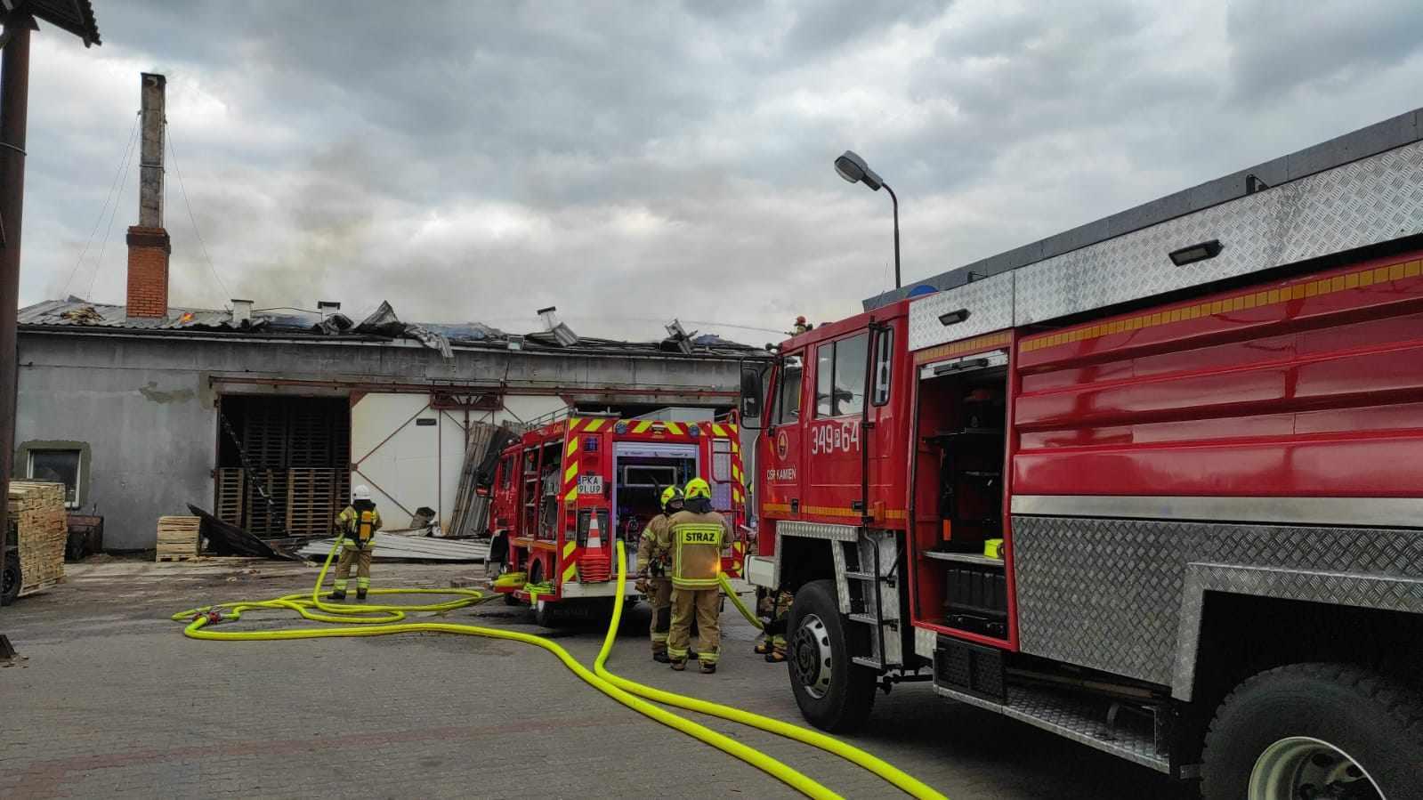 13 zastępów straży pożarnej gasiło pożar w niedzielne południe na terenie jednego z zakładów produkujących palety w Morawinie (gm. Ceków Kolonia , pow. Kaliski).