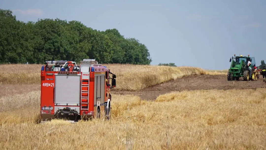 Susza daje osobie znak. W powiecie grodziskim doszło do pożaru zboża na pniu.