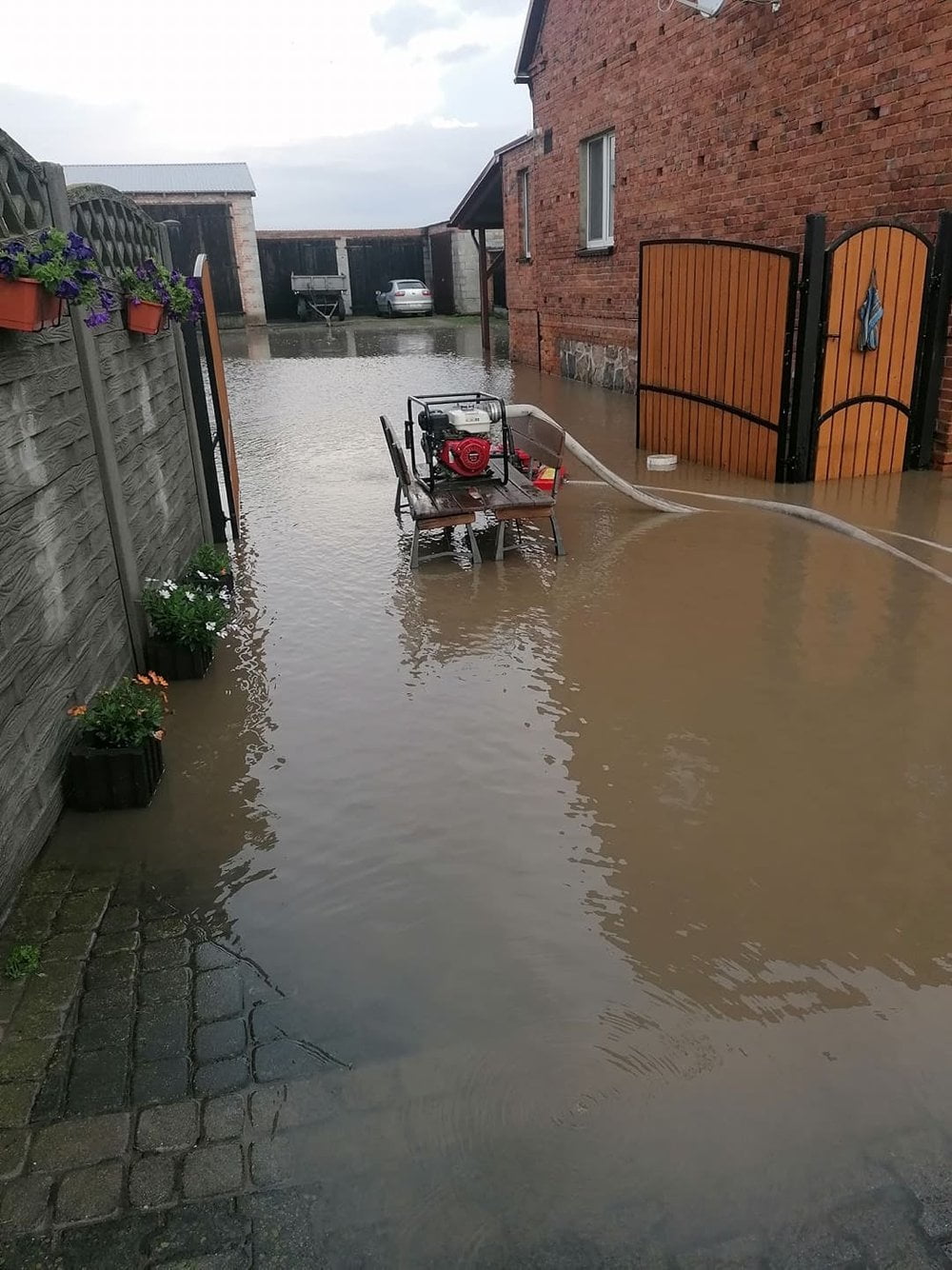 Strażacy zajęli się pompowanie wody z pomieszczeń oraz podwórza. Do działań użyli pompy szlamowej wysokiej wydajności oraz pompy pływającej.