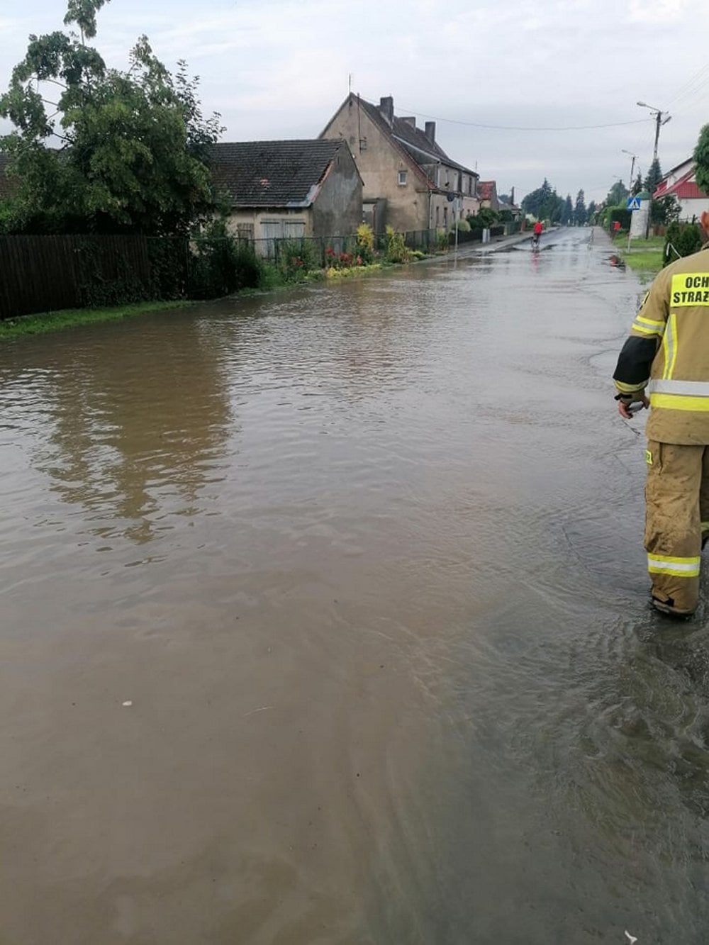 W miejscowości Kociugi po ulewie do podtopień i zalań przydomowych posesji oraz ulic.