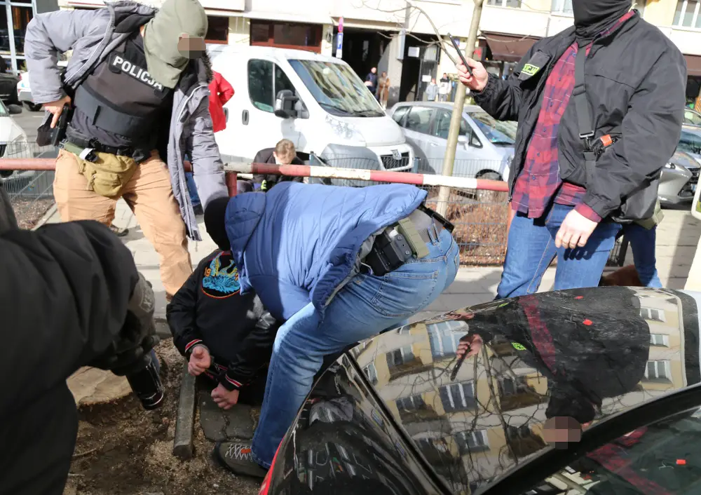 Policjanci kryminalnego ustalili, gdzie mogą przebywać podejrzani i przy wsparciu kontrterrorystów zatrzymali 46-latka. W samochodzie należącym do zatrzymanego policjanci znaleźli dwie krótkofalówki, plastikowe kajdanki legitymacje imitujące te policyjne, a także odznaki przypominające policyjne. Do tego telefony komórkowe i substancje psychotropowe.
