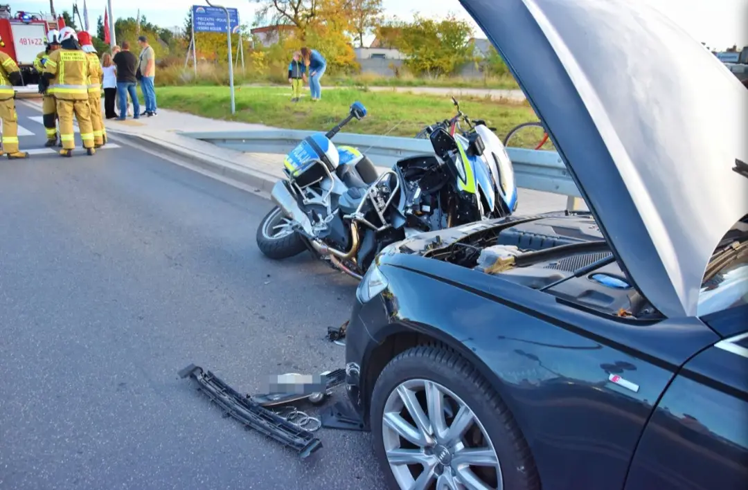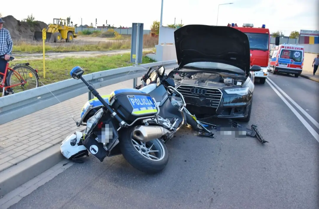 Według ustaleń, dwóch funkcjonariuszy kościańskiej policji jechało alarmowo ul. Gostyńską w Kościanie na zdarzenie drogowe. Na skrzyżowaniu z ul. Składowej doszło do zderzenia obu motocykli z samochodem marki dacia, którym podróżował 44-letni mieszkaniec Kościana. Jeden z motocykli uderzony został w bok, w wyniku czego kierujący nim policjant stracił panowanie, zjechał na przeciwległy pas ruchu i uderzył w samochód marki audi, którym podróżował 56-letni mieszkaniec Gminy Kościan. Drugi z motocykli uderzył w bok dacii. Wiadomo, że w chwili zdarzenia wszyscy uczestnicy byli trzeźwi.