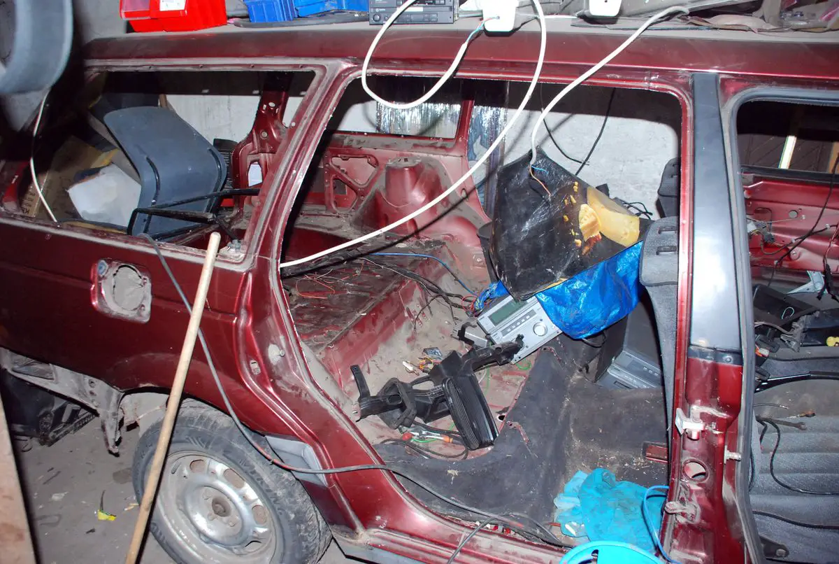 W trakcie oględzin okazało się, że skradzione auto zostało niemal w całości rozebrane na części. W pojeździe zdemontowano wszystkie drzwi, przednią maskę oraz siedzenia z wnętrza samochodu. Policjanci ujawnili również pocięte na kawałki tablice rejestracyjne. W pomieszczeniu znajdowały się także inne przedmioty w postaci narzędzi i elektronarzędzi, które najprawdopodobniej również pochodzą z kradzieży.