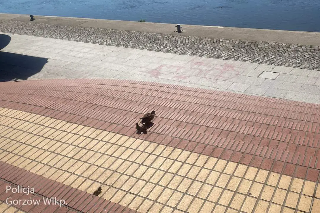 I taka niecodzienna interwencja zdarzyła się we wtorek (21 maja) przed godziną 10. Zaniepokojona mieszkanka miasta zgłosiła, że przez ulicę Jagiełły przechodzi kacza rodzina. Nie trzeba dodawać, że to bardzo ruchliwa droga. Policjanci na miejscu stwierdzili, że przeprowadzą je do Warty. Choć nie było to łatwe zadanie, zakończyło się sukcesem. Po drodze mundurowi zebrali brawa od mieszkańców. Niecodziennie widzi się policjantów w takiej sytuacji. Po kilkunastu minutach kacza rodzina bezpiecznie weszła do rzeki, a policjanci mieli już wezwanie na kolejną interwencję.
