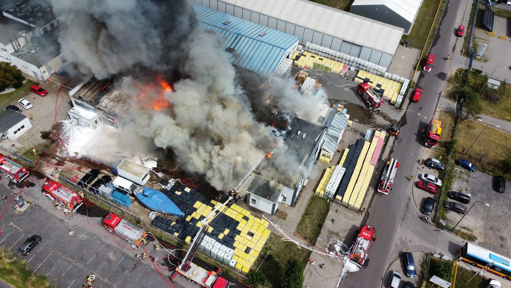 27 lipca 2023 roku o godzinie 13.26 Stanowisko Kierowania Komendanta Miejskiego Państwowej Straży Pożarnej w Poznaniu otrzymało informację o pożarze hali produkcyjno-magazynowej w Luboniu, przy ul. Przemysłowej 8.