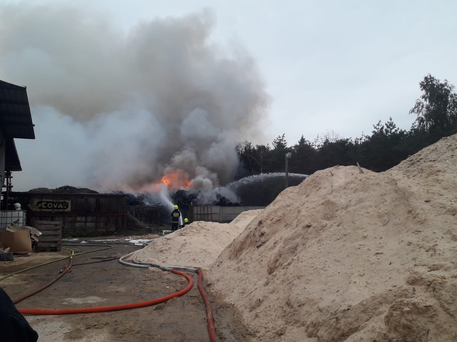 W miejscowości Ksawerów w gminie Koźminek doszło do potężnego pożaru na terenie zakładu produkującego palet.