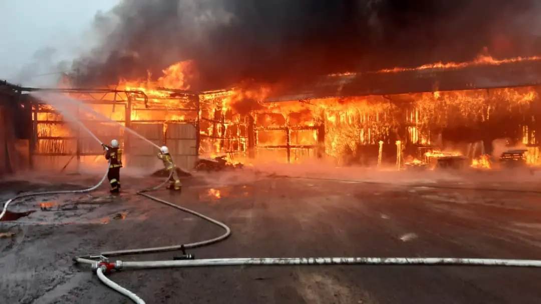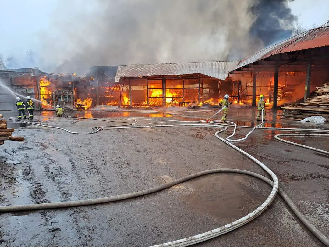 111 strażaków przez ponad 6 godzin zmagało się z pożarem tartaku w Grodźcu przy ul. Leśnej. Zgłoszenie do Stanowiska Kierowania Komendanta Miejskiego Państwowej Straży Pożarnej w Koninie wpłynęło o godz. 10.05, 10 stycznia 2023 r.