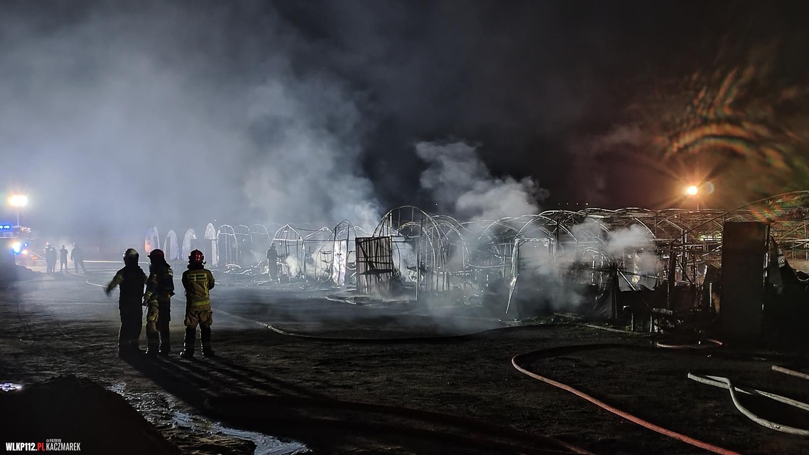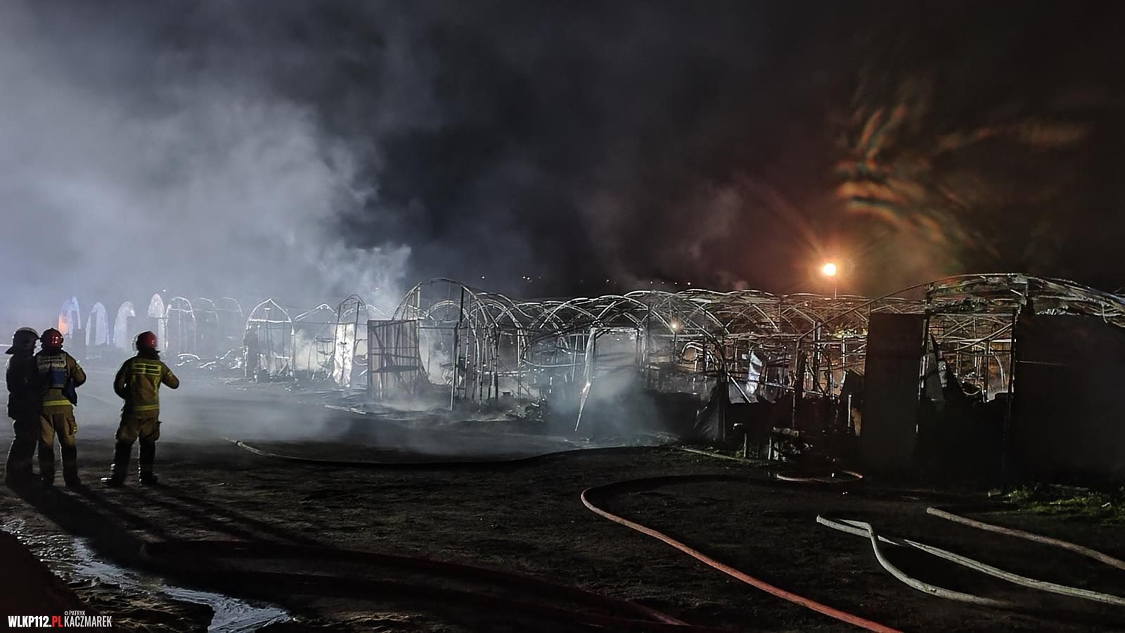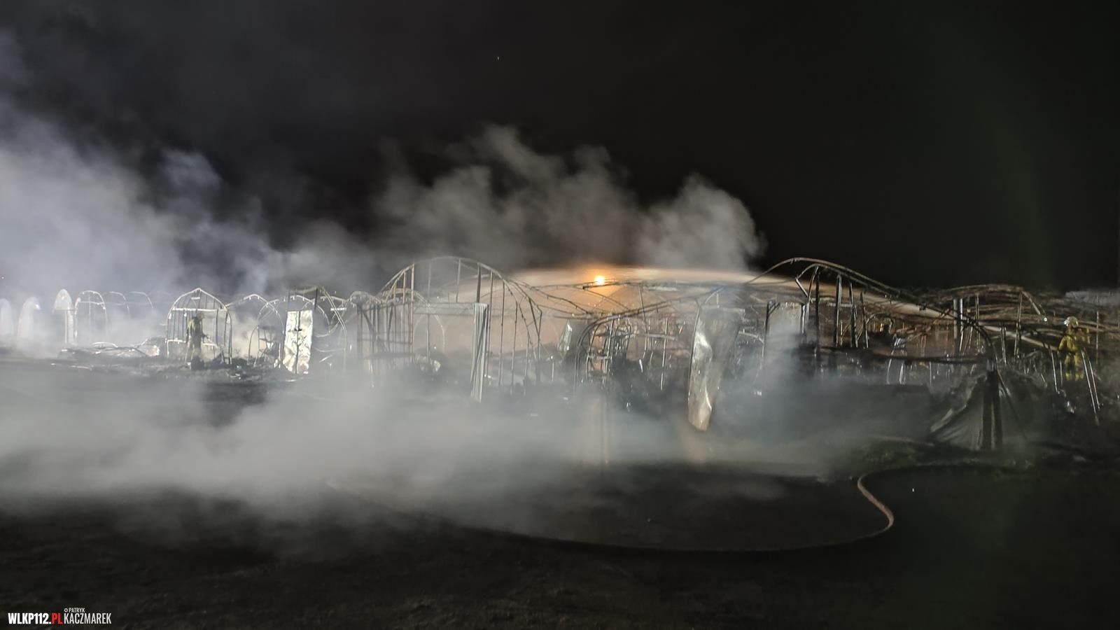 Po przybyciu na miejsce pierwszych zastępów stwierdzono, że pożarem objęte jest dziewięć hal foliowych, tzw. tuneli, w których składowane są artykuły używane. Mają one wymiary około 25 na 6 metrów. Wszystkie dziewięć tuneli spłonęło doszczętnie wraz z wyposażeniem. Są one zlokalizowane w bezpośrednim sąsiedztwie zabudowań mieszkalnych. W pierwszej fazie prowadzonych działań podali prądy w obronie zagrożonych domów mieszkalnych mówi dla portalu wlkp112.pl Dawid Kryś, z kościańskiej straży pożarnej