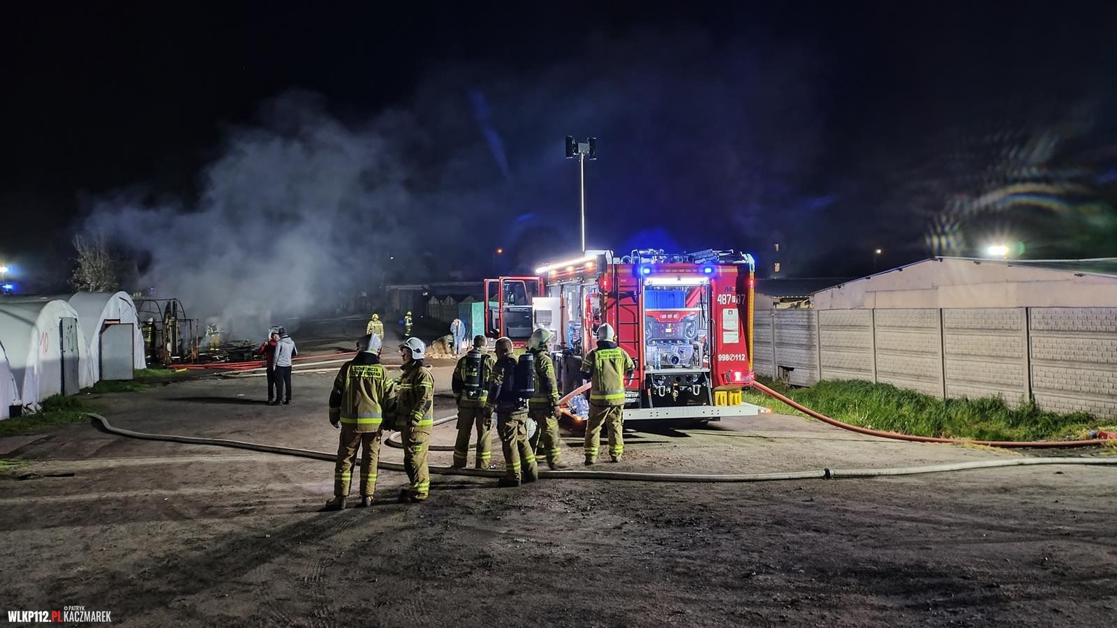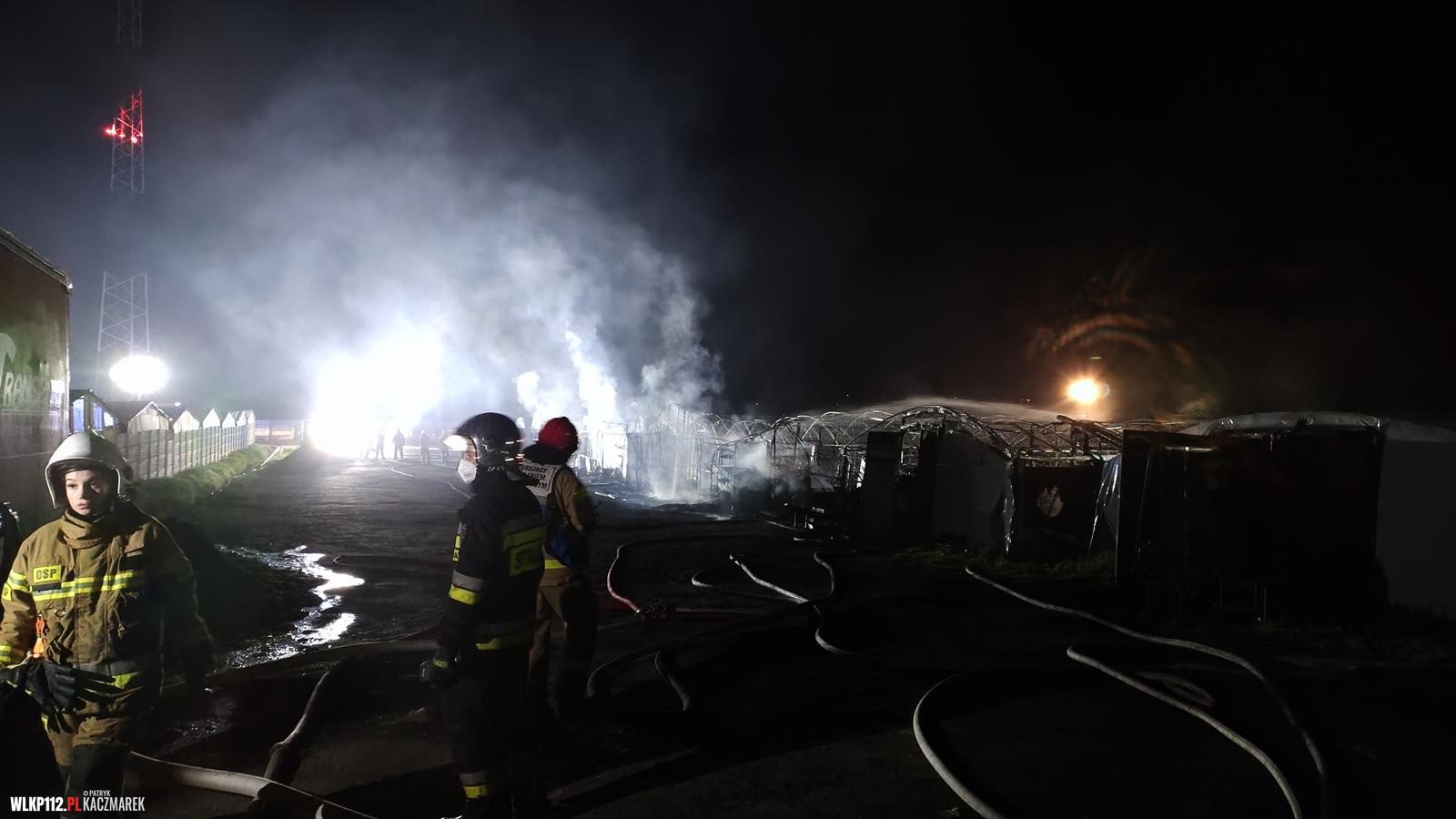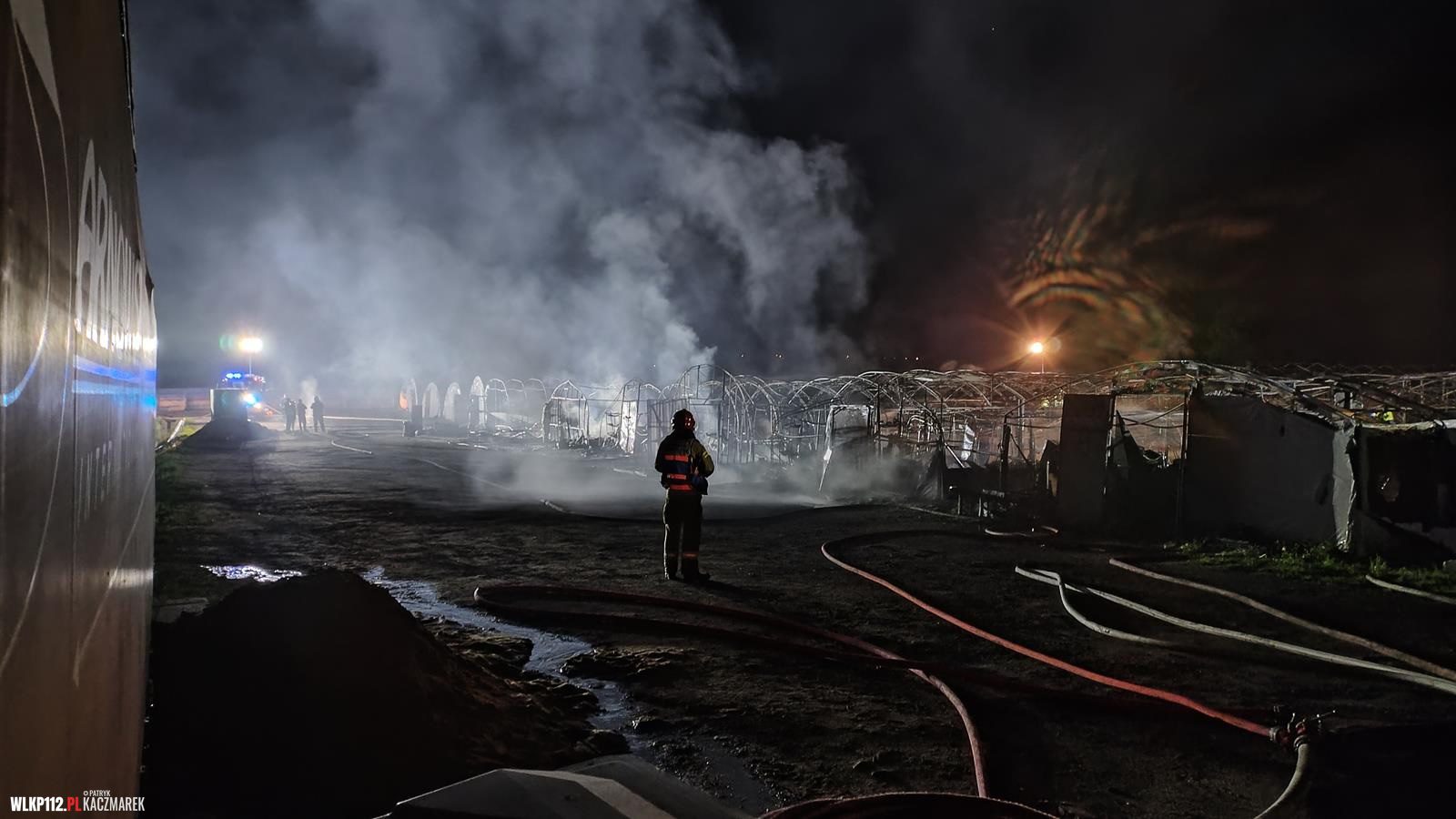 Po przybyciu na miejsce pierwszych zastępów stwierdzono, że pożarem objęte jest dziewięć hal foliowych, tzw. tuneli, w których składowane są artykuły używane. Mają one wymiary około 25 na 6 metrów. Wszystkie dziewięć tuneli spłonęło doszczętnie wraz z wyposażeniem. Są one zlokalizowane w bezpośrednim sąsiedztwie zabudowań mieszkalnych. W pierwszej fazie prowadzonych działań podali prądy w obronie zagrożonych domów mieszkalnych mówi dla portalu wlkp112.pl Dawid Kryś, z kościańskiej straży pożarnej