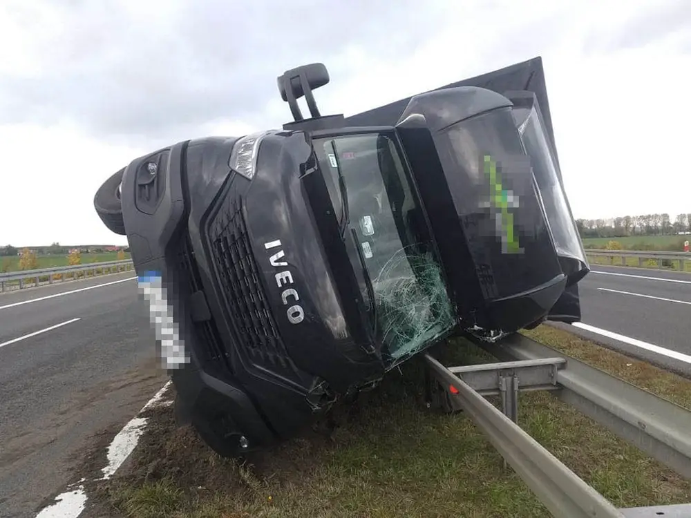 Kierujący dostawczym iveco jechał w kierunku Zielonej Góry. W pewnym momencie silny wiatr uderzył w bok samochodu.