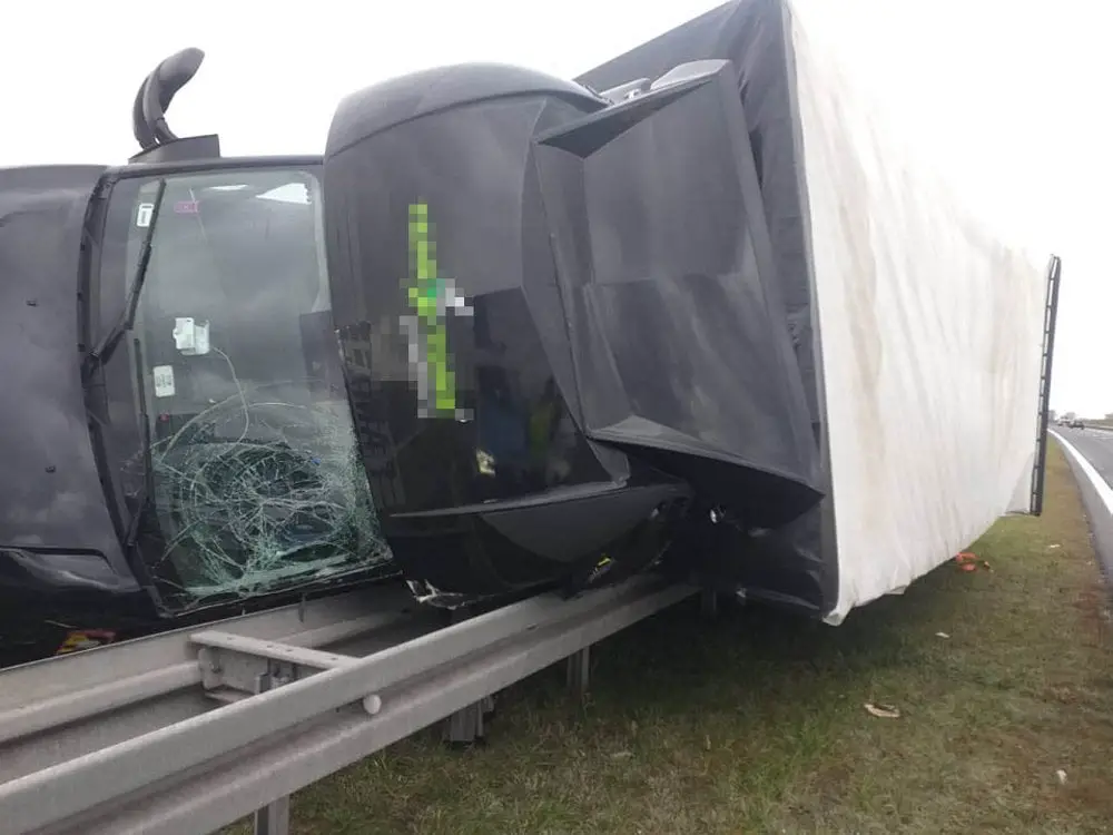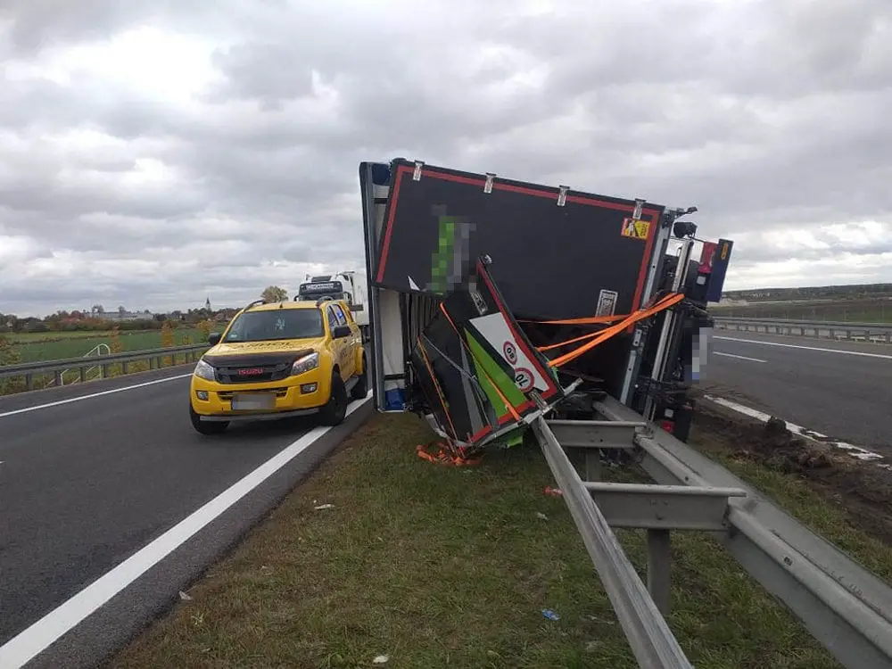 Kierowca Iveco nie miał żadnych szans. Podmuch wiatru zdmuchnął pojazd z drogi na barierki.