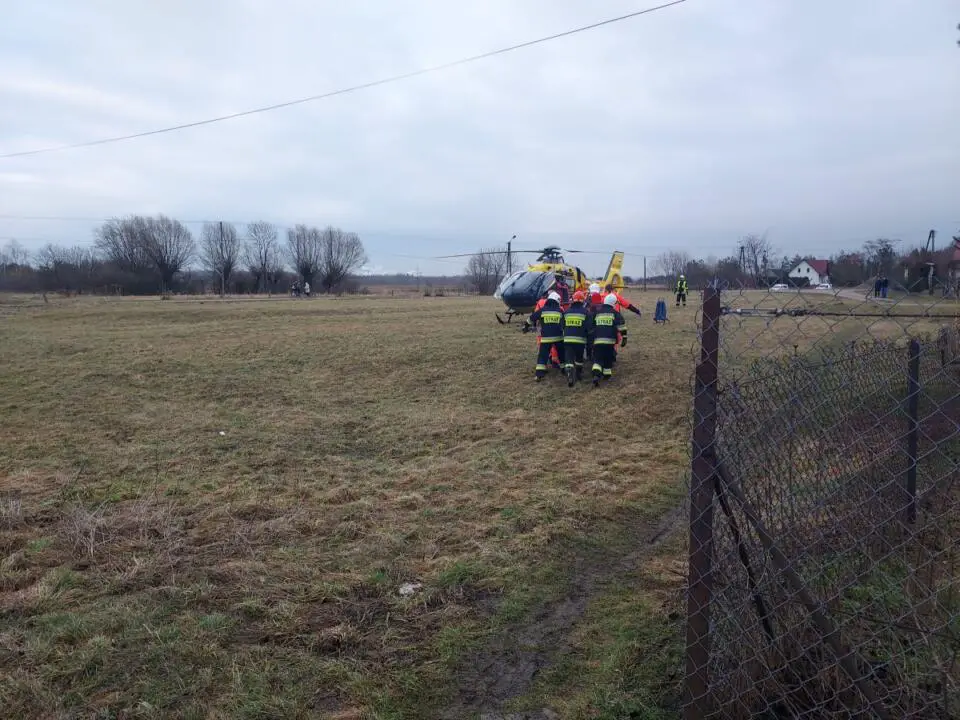 Do wypadku doszło w Gosławicach. Na łuku drogi 28-letnia kobieta straciła panowanie nad samochodem. Uderzyła w drzewo, a z samochodu wypadł jej 4-letni syn. Strażacy z OSP Gosławice musieli wycinać zakleszczoną we wraku pojazdu kobietę. Na miejscu lądował helikopter LPR, który ranną kobietę zabrał do szpitala.