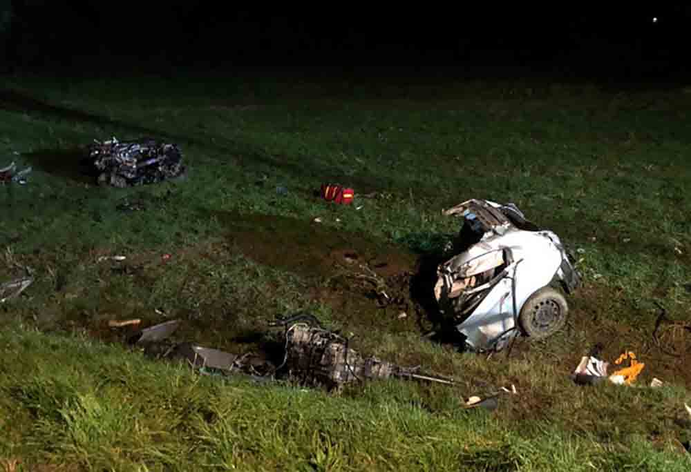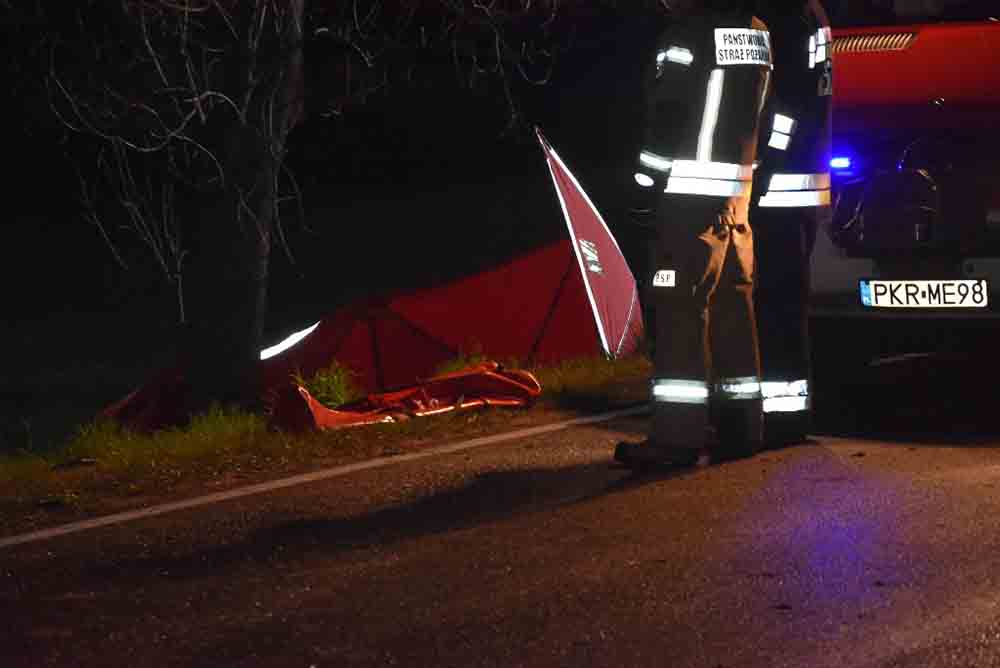 Rozpędzone bmw wypadło z drogi zaraz za skrętem w kierunku Konarzewa. Na miejsce szybko dojechały wozy strażaków z Krotoszyna oraz dwa zastępy z OSP Zduny. Ratownicy na miejscu zostali makabryczny widok. Kierowca bmw leżał przy drzewie w fotelu wyrwanym siłą uderzenia z bmw. Ciało 25-latka zostało dosłownie rozerwane. Bmw po zderzeniu z drzewem rozpadło się na dwie części. Obie leżały w odległości około 30 metrów od drzewa. Mniejsze elementy samochodu rozpadły się w promieniu około 150 m.