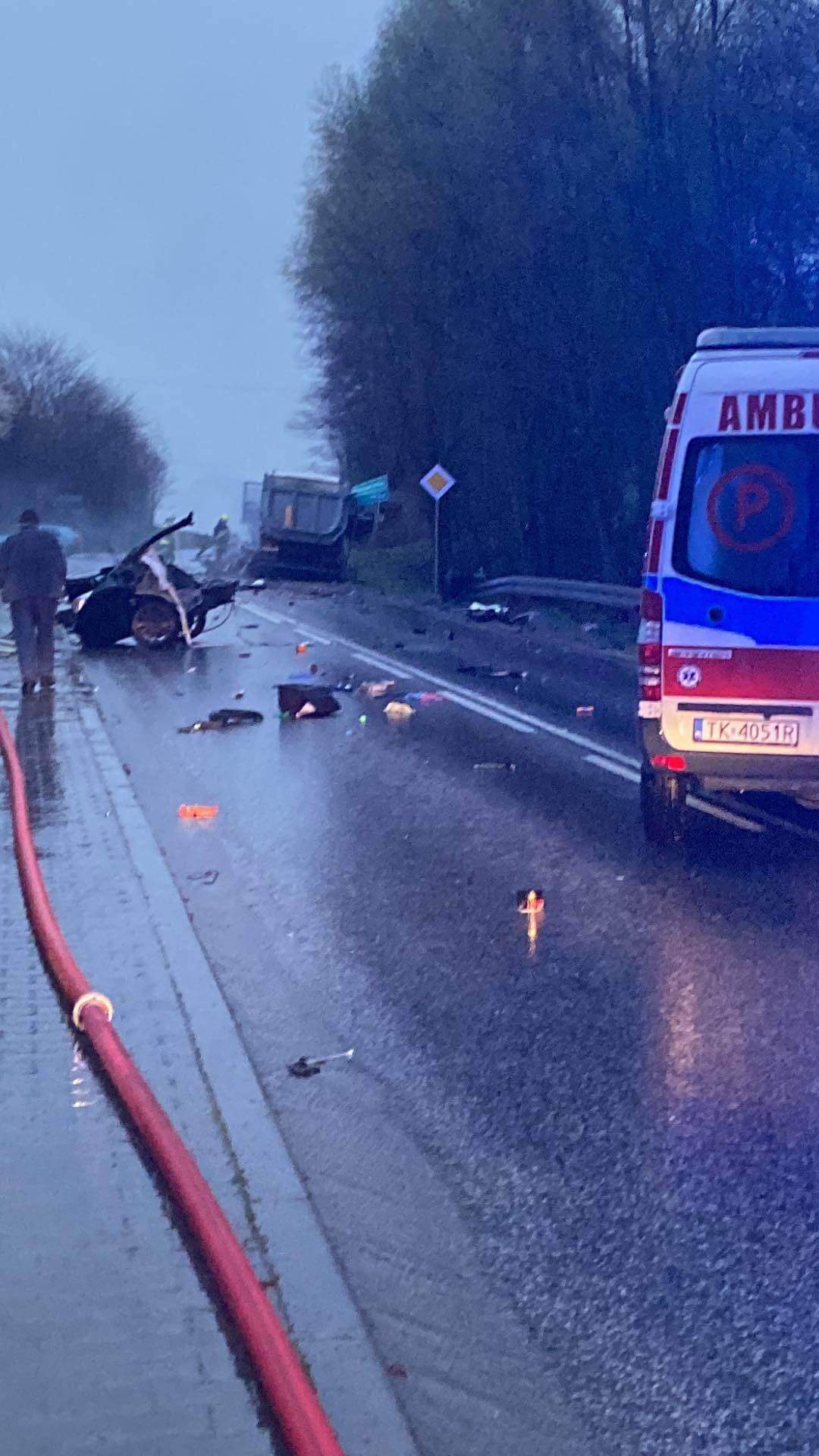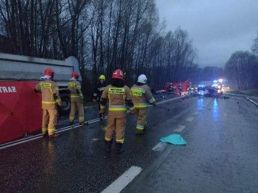 Na miejsce natychmiast zadysponowano strażaków, policję oraz zespoły ratownictwa medycznego. – Według wstępnych ustaleń kierowca BMW najprawdopodobniej stracił panowanie nad samochodem, w wyniku czego zderzył się z samochodem ciężarowym marki MAN, który kierował trzeźwy 52-latek. Niestety śmierć na miejscu poniosły cztery osoby, które podróżowały samochodem osobowym – poinformował mł. asp. Maciej Ślusarczyk z Komendy Wojewódzkiej Policji w Kielcach.