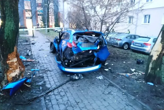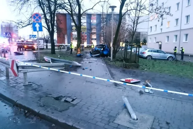 Ze wstępnych ustaleń policji wiadomo, że kierujący jechał od strony ul. Markwarta. Na skrzyżowaniu z duża prędkością wypadł z drogi przebijając barierki ochronne. Mazda wjechał na chodnik i uderzyła w drzewa. 38-letni kierowca nie miał żadnych szans.
