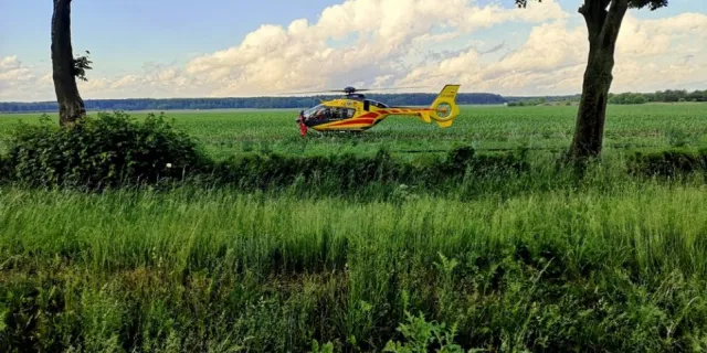 Pasażerka bmw w ciężkim stanie została zabrana śmigłowcem do szpitala. Trwa walka o życie kobiety.