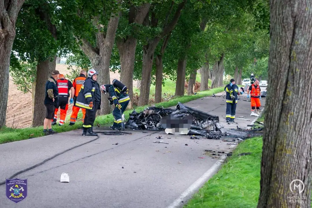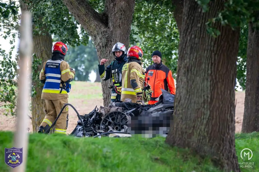 Z porsche nic nie zostało. Auto uderzyło w drzewo. Dwie osoby zginęły na miejscu.