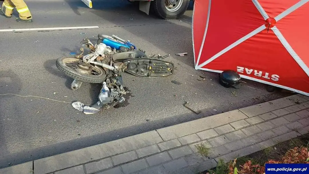 W piątek (30.09.2022) około godz. 09:30 oficer dyżurny kętrzyńskich policjantów otrzymał zgłoszenie, z treści którego wynikało, że w rejonie ronda ks. Wojciecha Rogaczewskiego w Kętrzynie doszło do wypadku drogowego z udziałem dwóch motocykli. Na miejsce natychmiast zostały wysłane służby ratunkowe. Ze wstępnych ustaleń policjantów pracujących na miejscu tego zdarzenia wynika, że na Alei Pileckiego kierujący motocyklem 45-latek podczas manewru wyprzedzania uderzył w kierującego motorowerem, który to z kolei rozpoczął manewr skrętu w lewo. W wyniku zderzenia pojazdów niestety kierujący motorowerem 66-letni mieszkaniec miasta zginął na miejscu. Wszystkie czynności wykonywane na miejscu tego tragicznego w skutkach zdarzenia drogowego są wykonywane pod nadzorem prokuratora. Droga obecnie jest zablokowana. Funkcjonariusze kierują na objazdy.