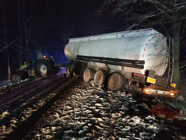 Do poważnego wypadku doszło w środę, 29 grudnia, na trasie Długa Goślina – Studzieniec. Ciągnik z cysterna zderzył się z osobówką. Ranna jedna osoba.