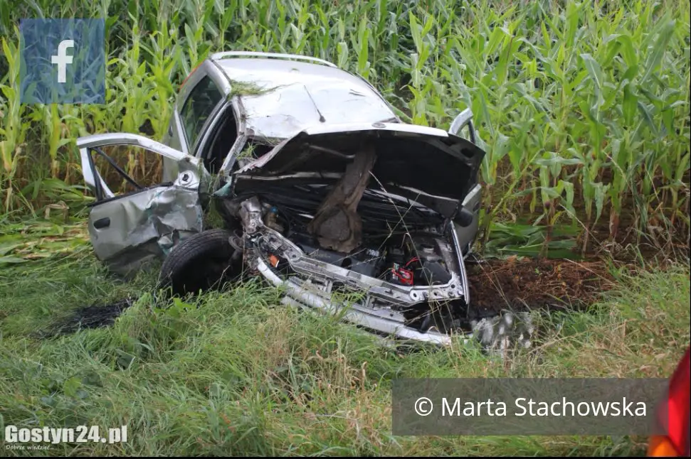 Do poważnie wyglądającego zdarzenia drogowego doszło po popołudniu na drodze Poniec-Drzewce. Samochód osobowy uderzył w drzewo i zatrzymał się dopiero w polu kukurydzy, po przeciwnej stronie jezdni. Kierowca wyszedł z wraku o własnych siłach, a gdy na miejsce dotarły służby medyczne odmówił udzielenia sobie jakiejkolwiek pomocy.