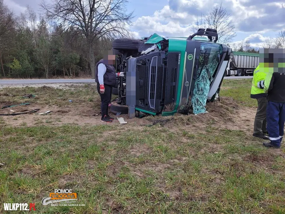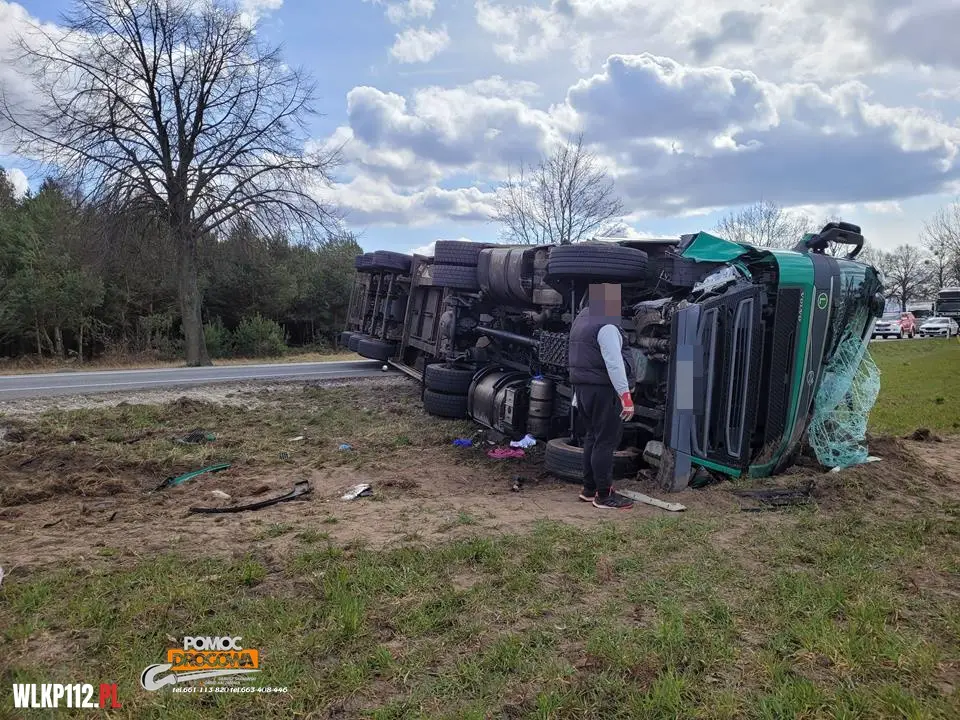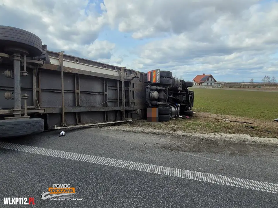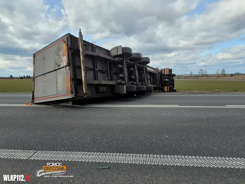 Samochód ciężarowy leży na boku i są osoby poszkodowane potrzebujące pomocy medycznej. Dyżurny SKKP do działań zadysponował dwa zastępy ratownictwa technicznego i samochód rozpoznawczo ratowniczy z Jednostki Ratowniczo Gaśniczej w Nowym Tomyślu oraz zastępy z jednostek Ochotniczej Straży Pożarnej z Bolewic i Lwówka.