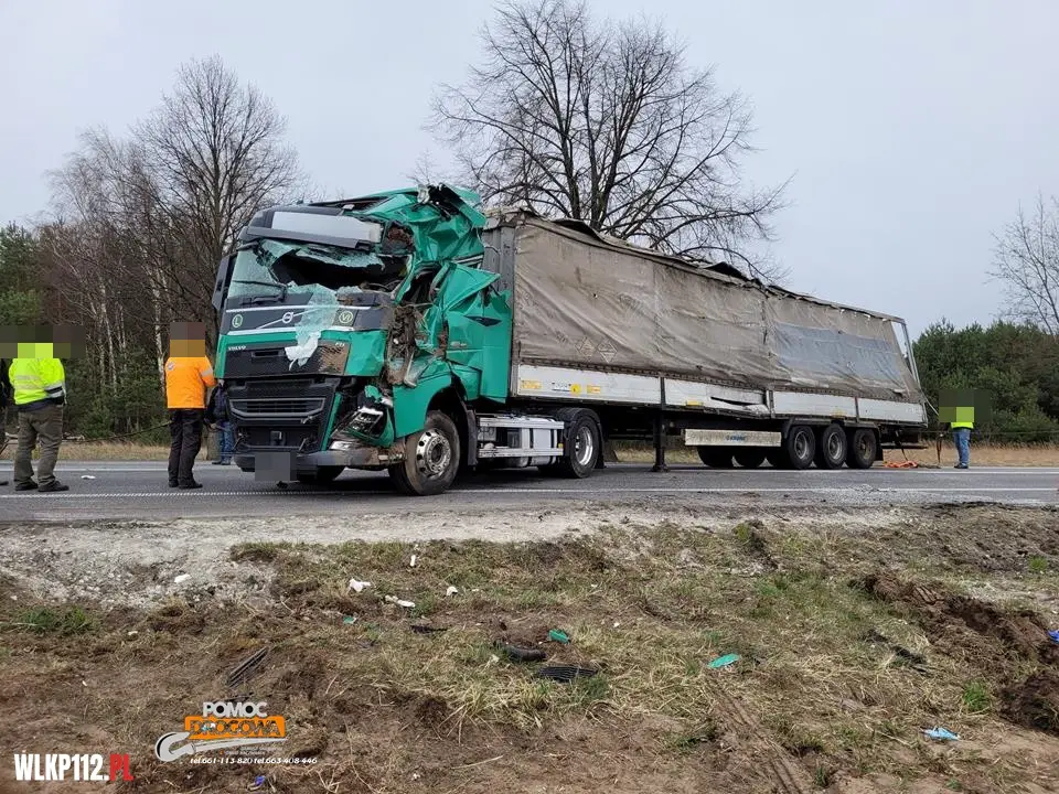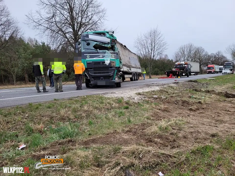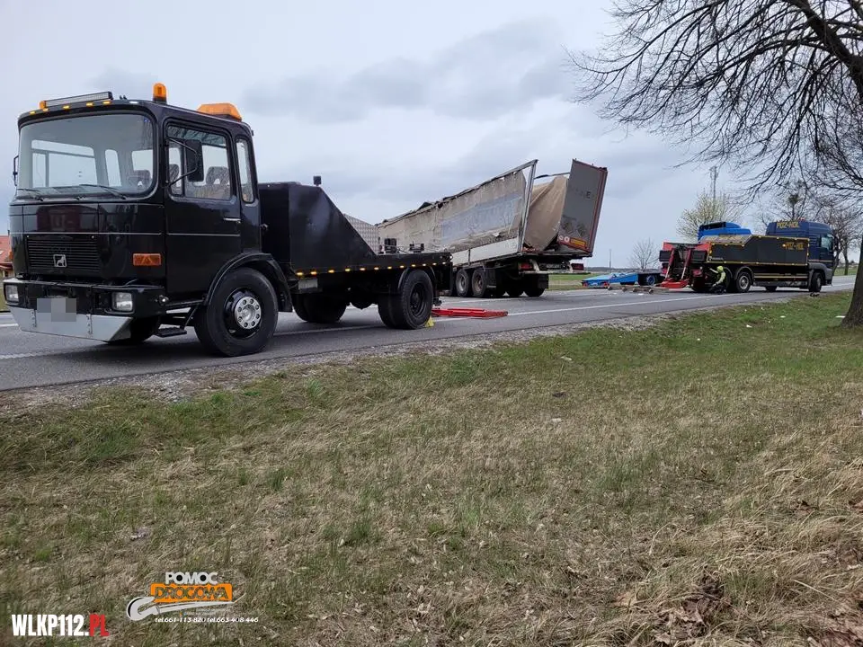 Naczepa pojazdu blokowała pasy ruchu w obu kierunkach. Kierujący pojazdem w chwili przybycia na miejsce straży pożarnej znajdował się poza pojazdem, samochodem ciężarowym przewożony był sprzęt AGD.