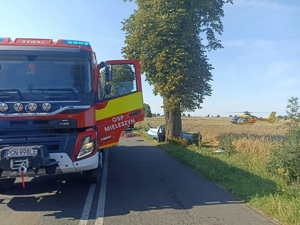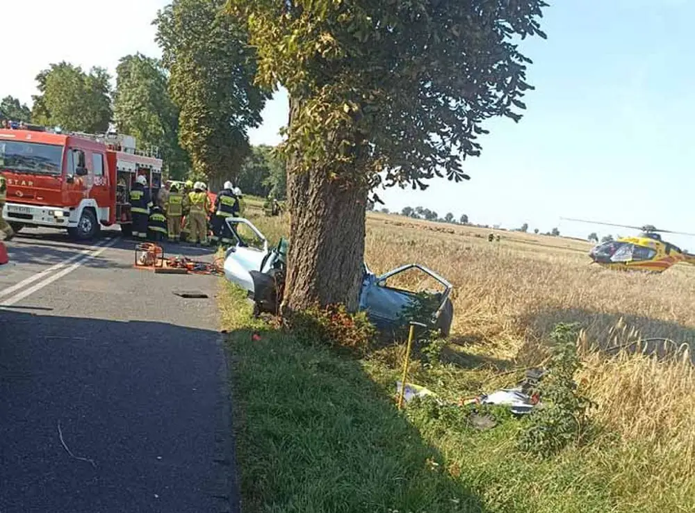 Jak informuje policji w Gnieźnie, do wypadku doszło około godz. 9 na drodze w miejscowości Łopiennie. Jak wstępnie ustalili policjanci, kierujący fiatem zjechał z drogi i uderzył w drzewo. w samochodzie był tylko kierowca.